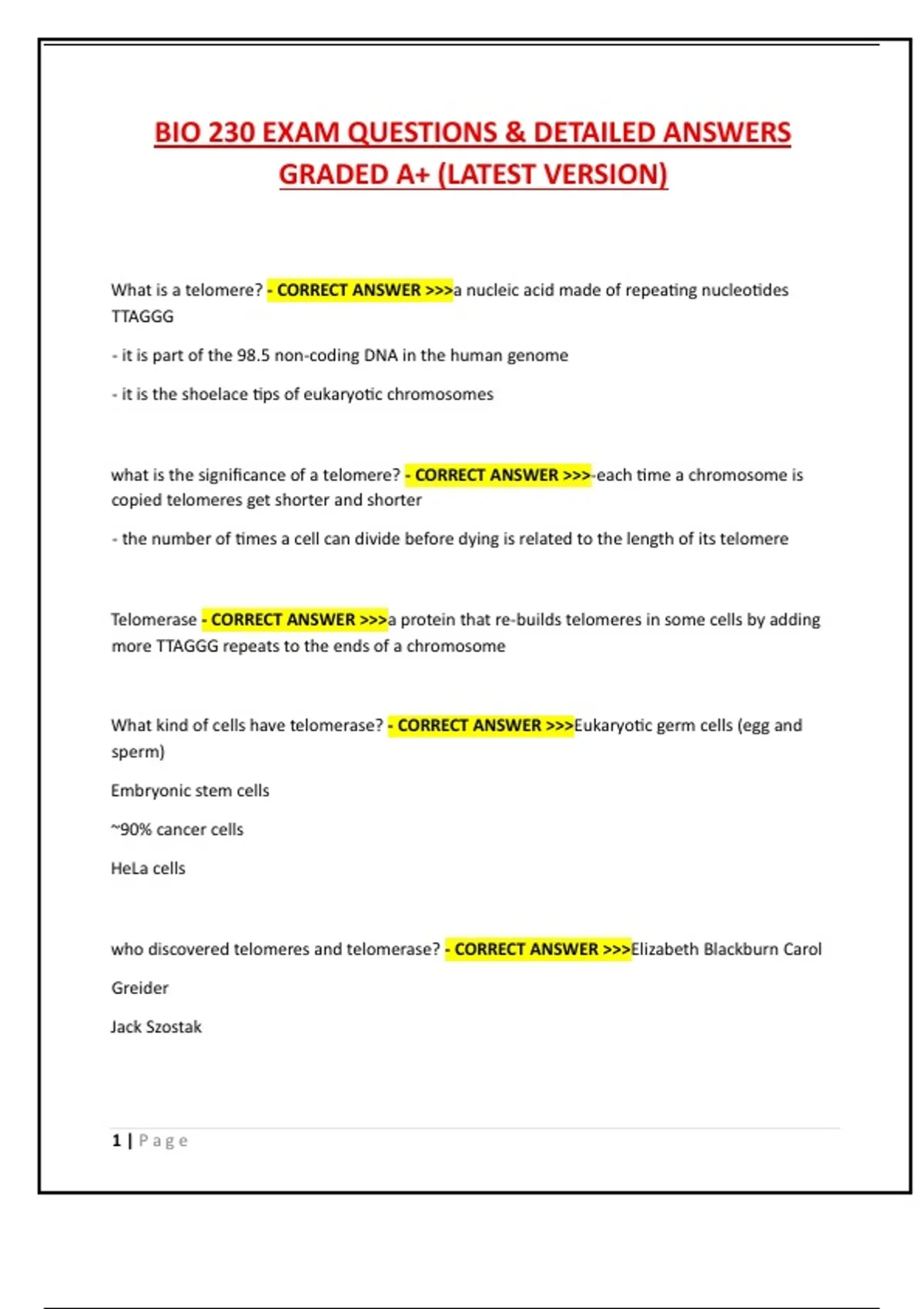 BIO 230 EXAM QUESTIONS & DETAILED ANSWERS