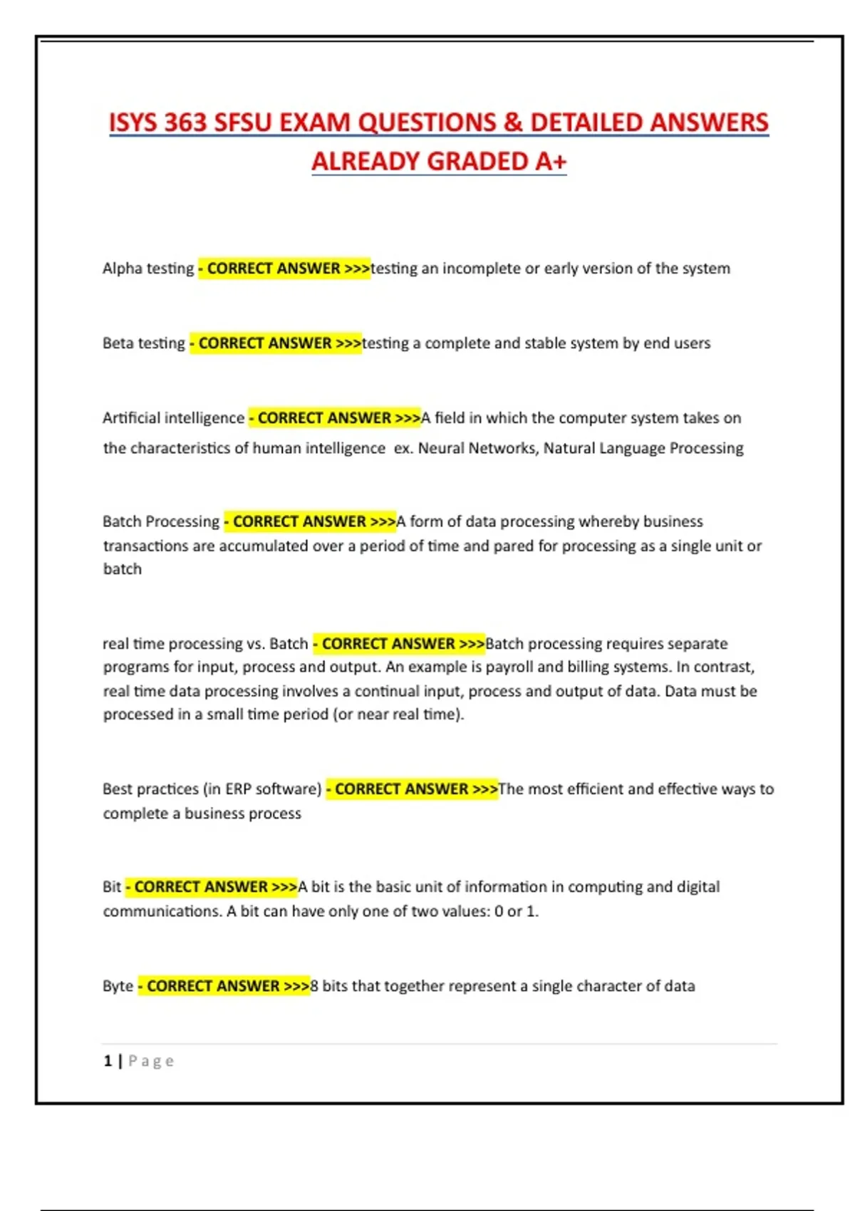 ISYS 363 SFSU EXAM QUESTIONS & DETAILED ANSWERS