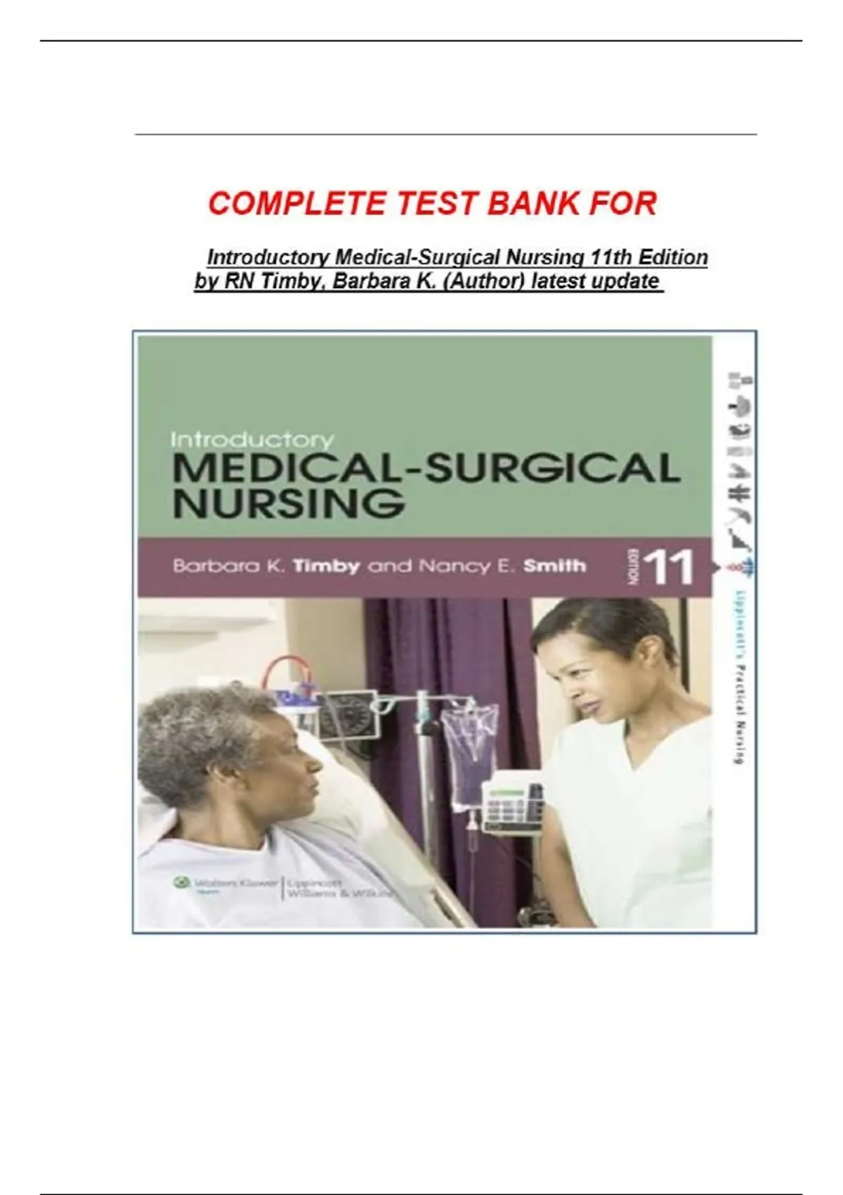 Surgical Nursing 11e Comprehensive Test Bank by Barbara K Timby,