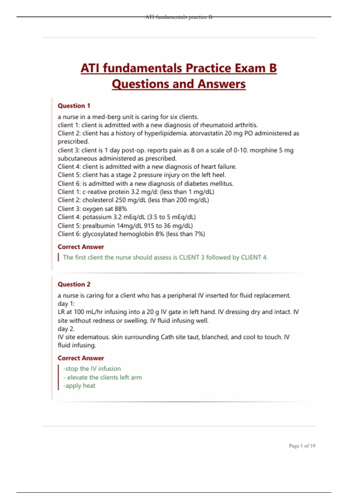 , ATI fundamentals practice B