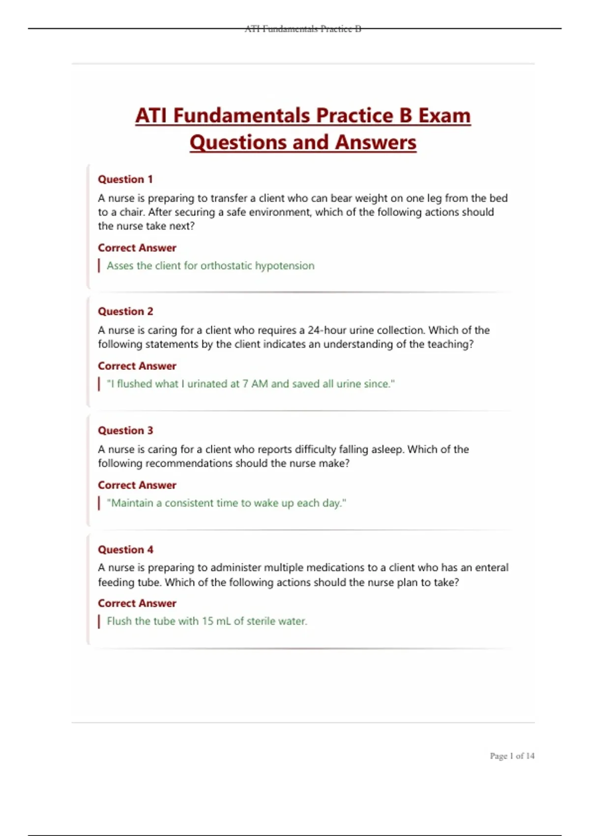 ATI Fundamentals Practice B