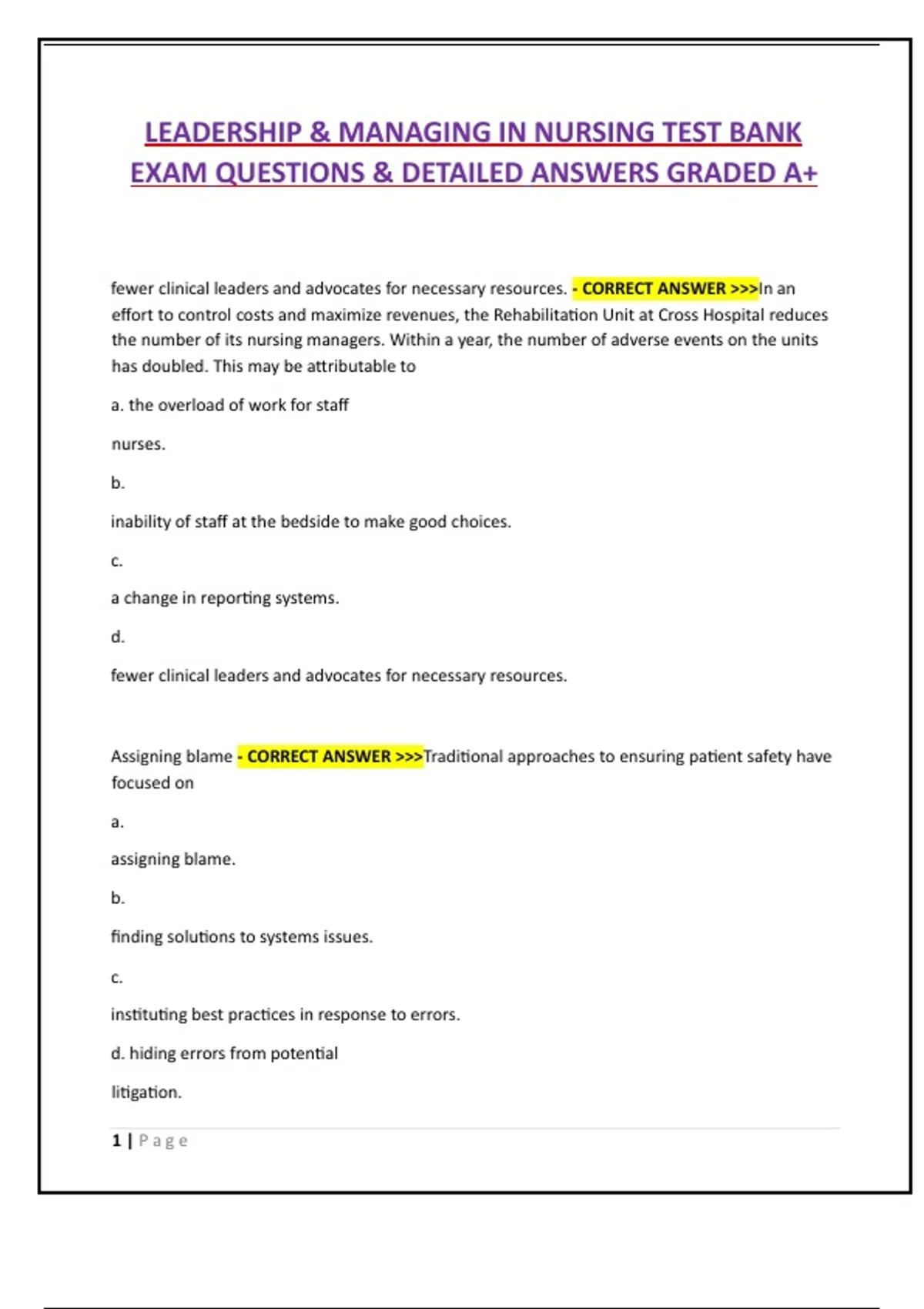 LEADERSHIP & MANAGING IN NURSING TEST BANK
