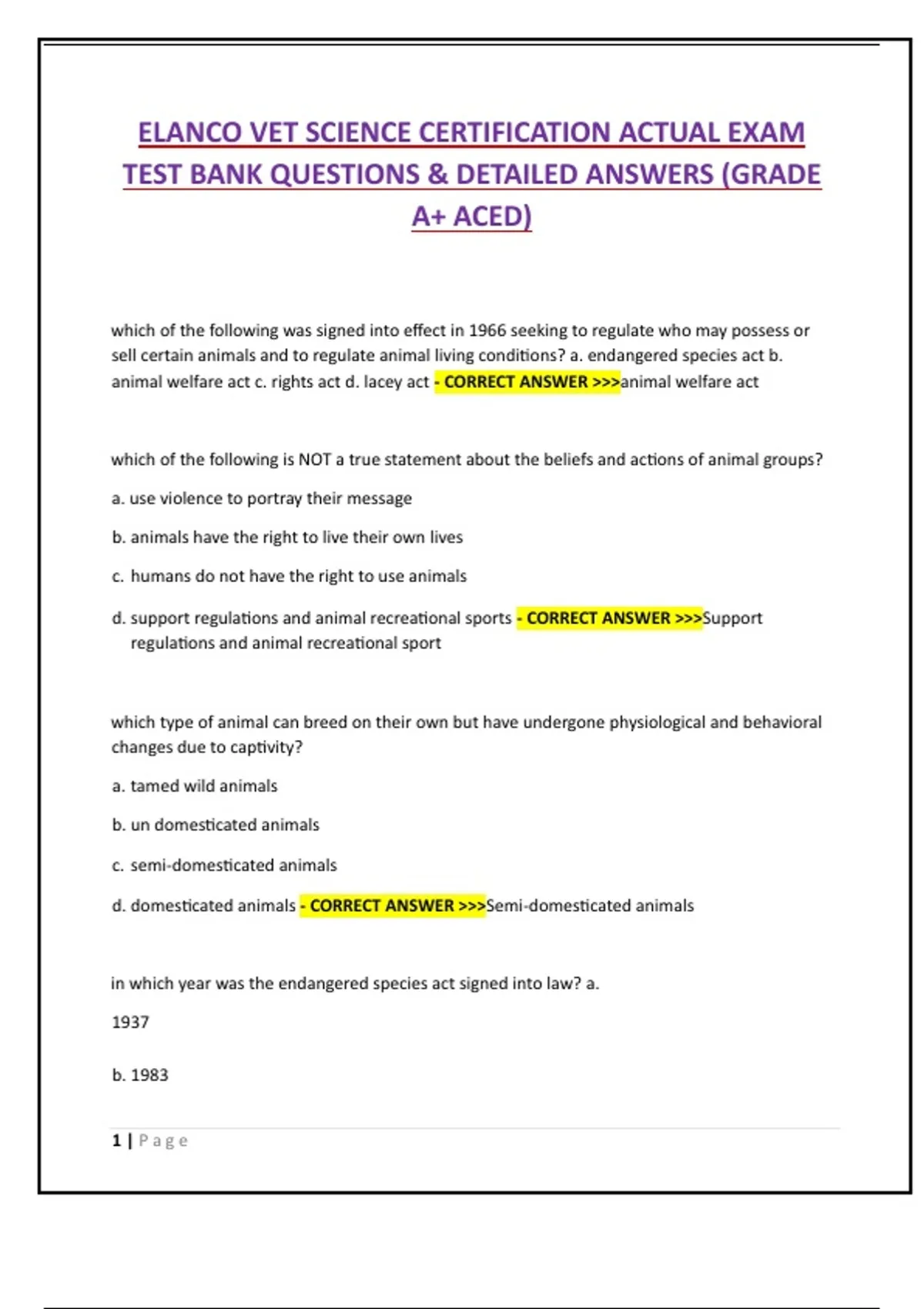 ELANCO VET SCIENCE CERTIFICATION ACTUAL EXAM