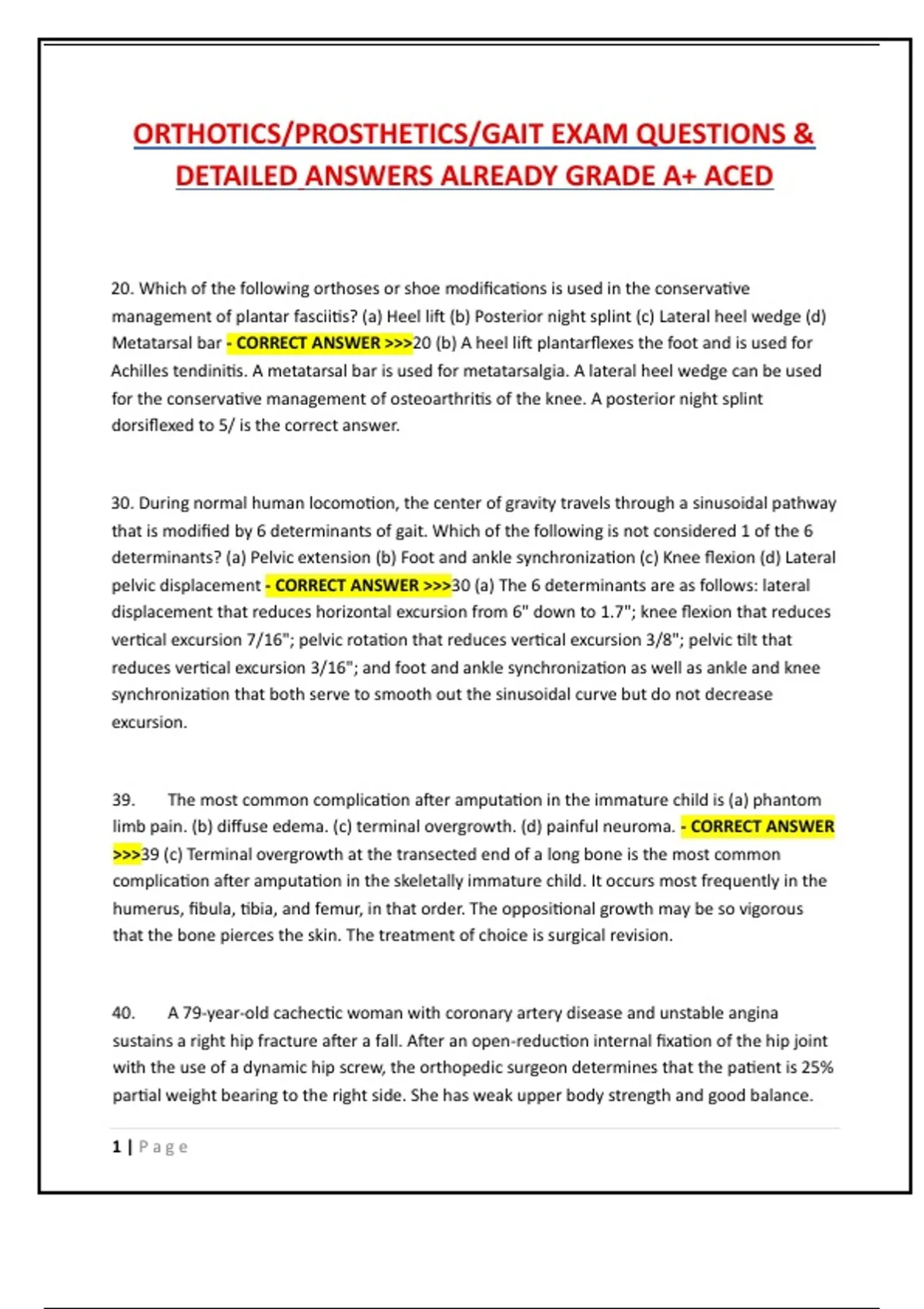 ORTHOTICS/PROSTHETICS/GAIT EXAM QUESTIONS & DETAILED ANSWERS ALREADY GRADE A+ ACED ORTHOTICS/PROSTHETICS/GAIT EXAM QUESTIONS & DETAILED ANSWERS ALREADY GRADE A+ ACED