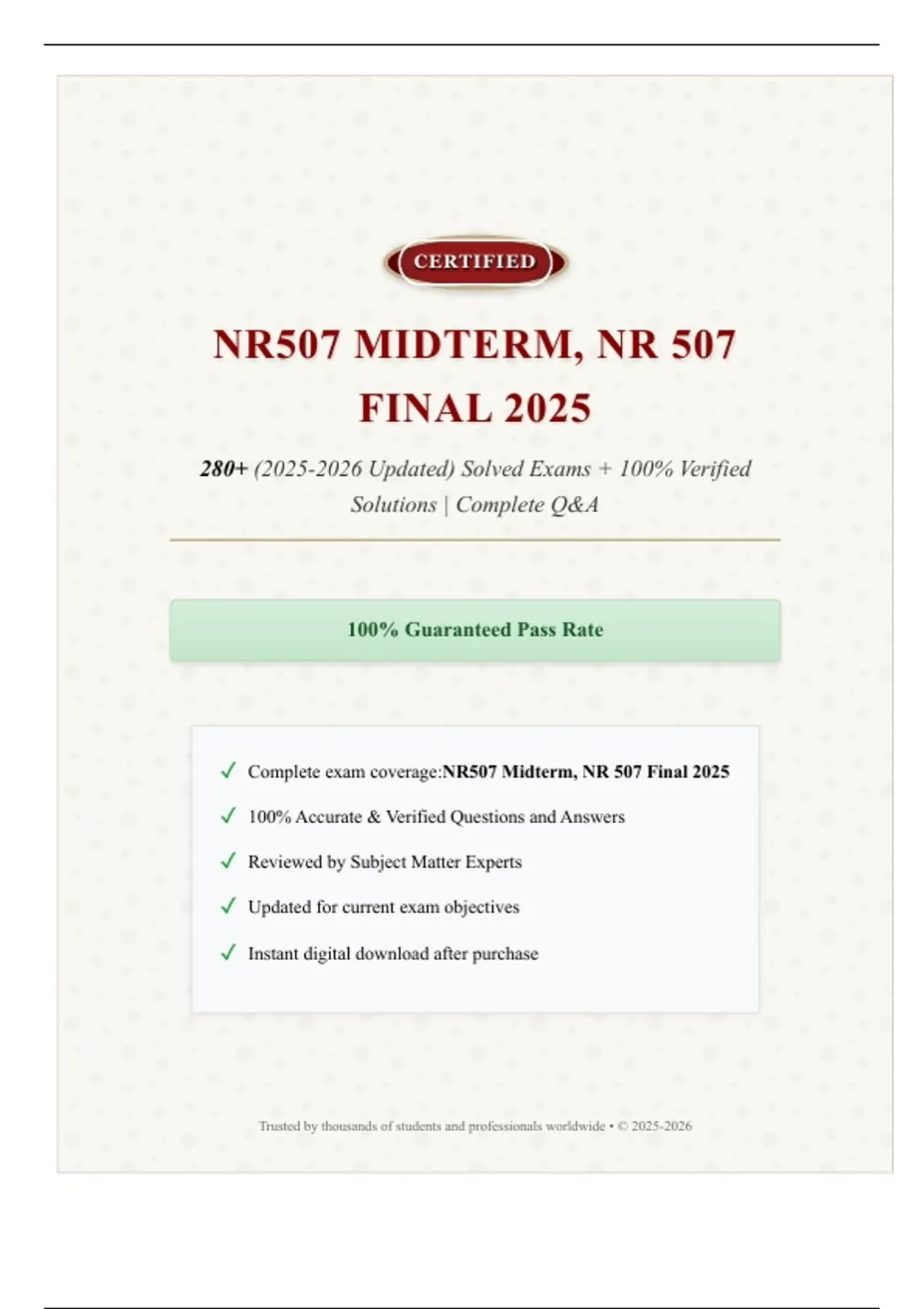 ✓ Complete exam coverage:NR507 Midterm, NR 507 Final 2025