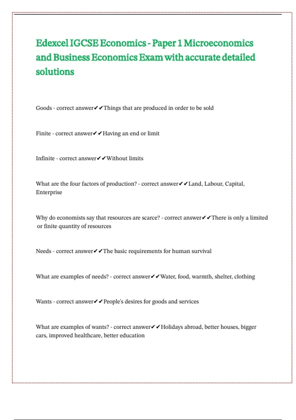 Edexcel IGCSE Economics - Paper 1 Microeconomics and Business Economics Exam with accurate detailed solutions
