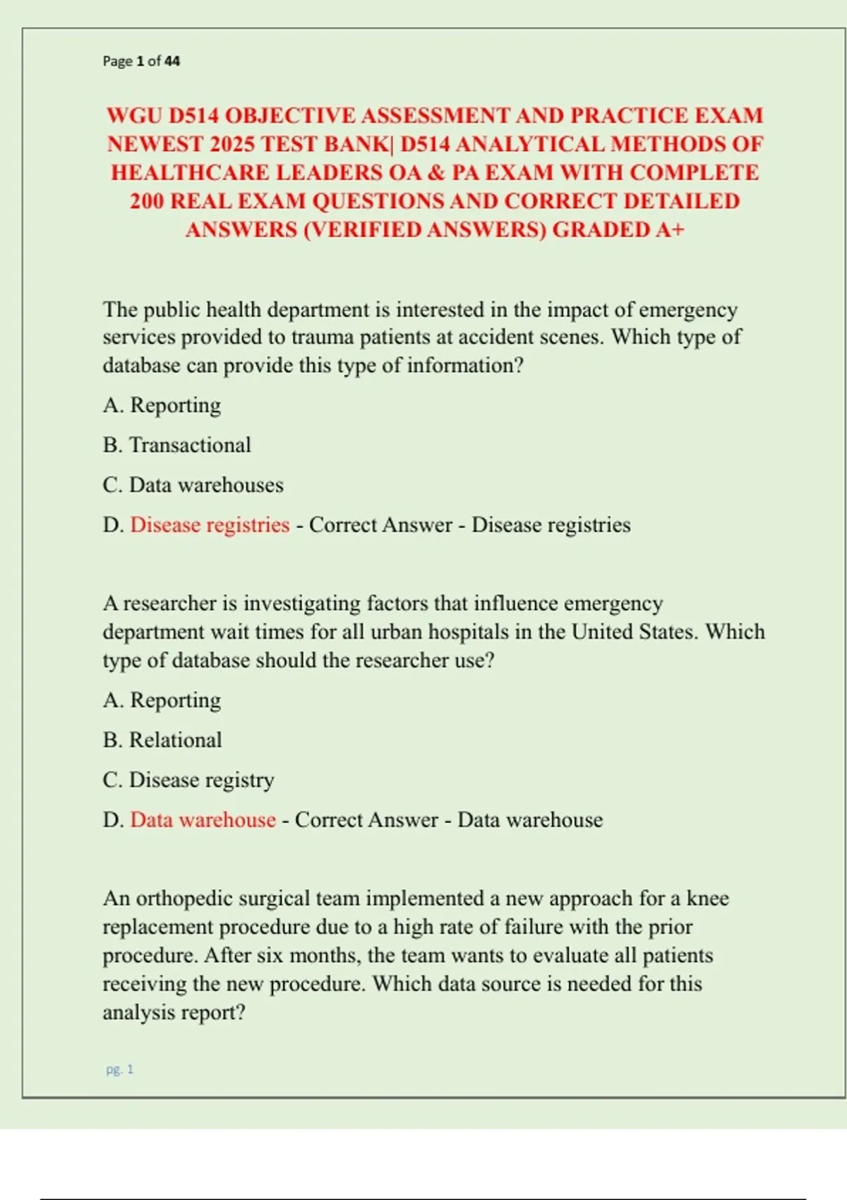 WGU D514 OBJECTIVE ASSESSMENT AND PRACTICE EXAM