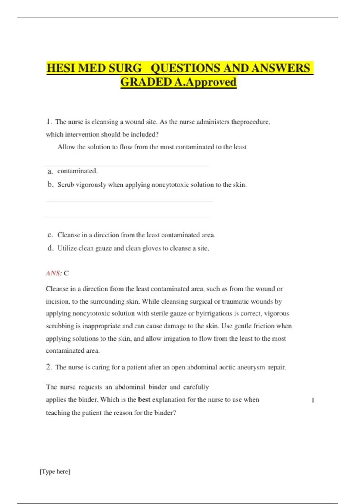 HESI MED SURG QUESTIONS AND ANSWERS