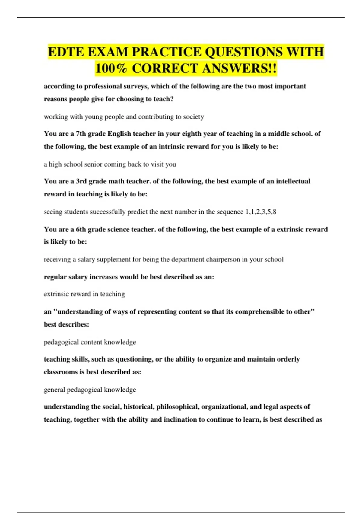 EDTE EXAM PRACTICE QUESTIONS WITH