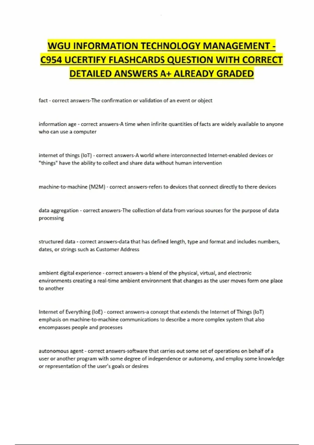 WGU INFORMATION TECHNOLOGY MANAGEMENT - C954 UCERTIFY FLASHCARDS QUESTION WITH CORRECT DETAILED ANSWERS A+ ALREADY GRADED