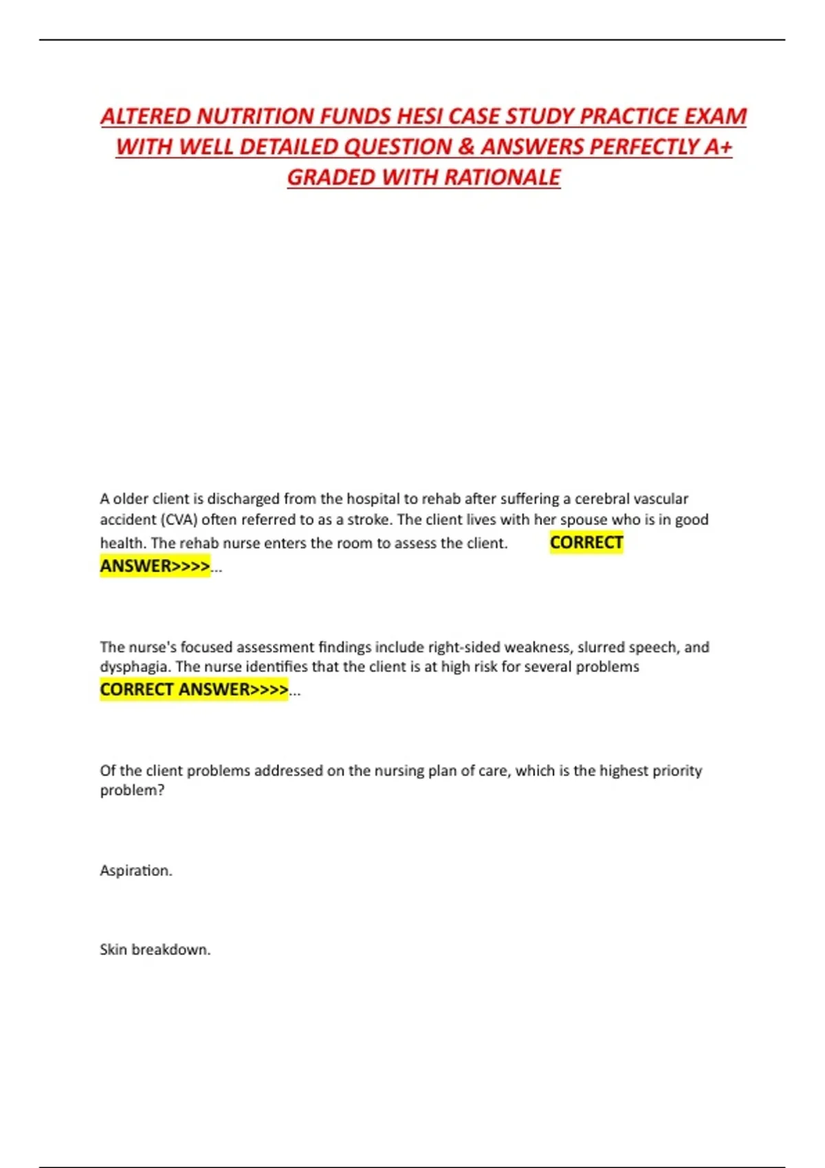 ALTERED NUTRITION FUNDS HESI CASE STUDY PRACTICE EXAM WITH WELL DETAILED QUESTION & ANSWERS PERFECTLY A+ GRADED WITH RATIONALE ALTERED NUTRITION FUNDS HESI CASE STUDY PRACTICE EXAM WITH WELL DETAILED QUESTION & ANSWERS PERFECTLY A+ GRADED WITH RATIONALE