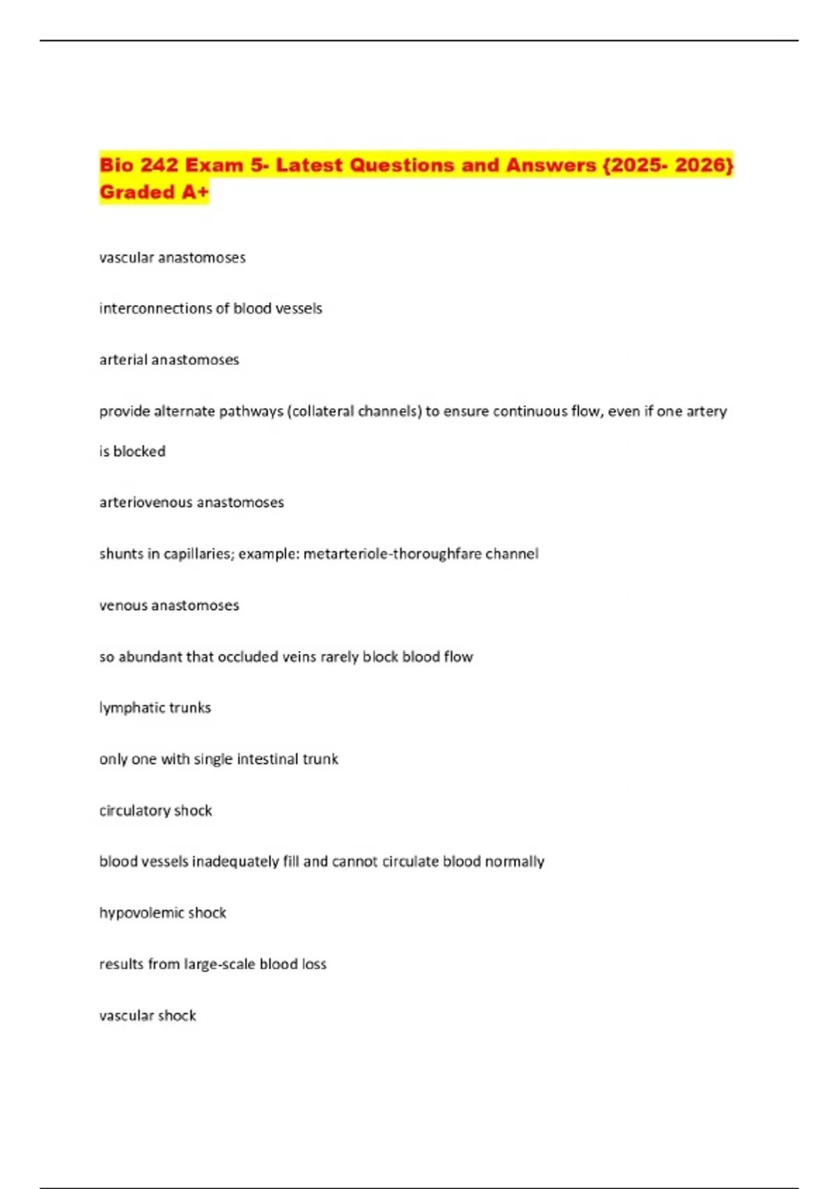 BIO 242 Exams Bundle With Verified Questions And Answers | Latest Updated Solutions
