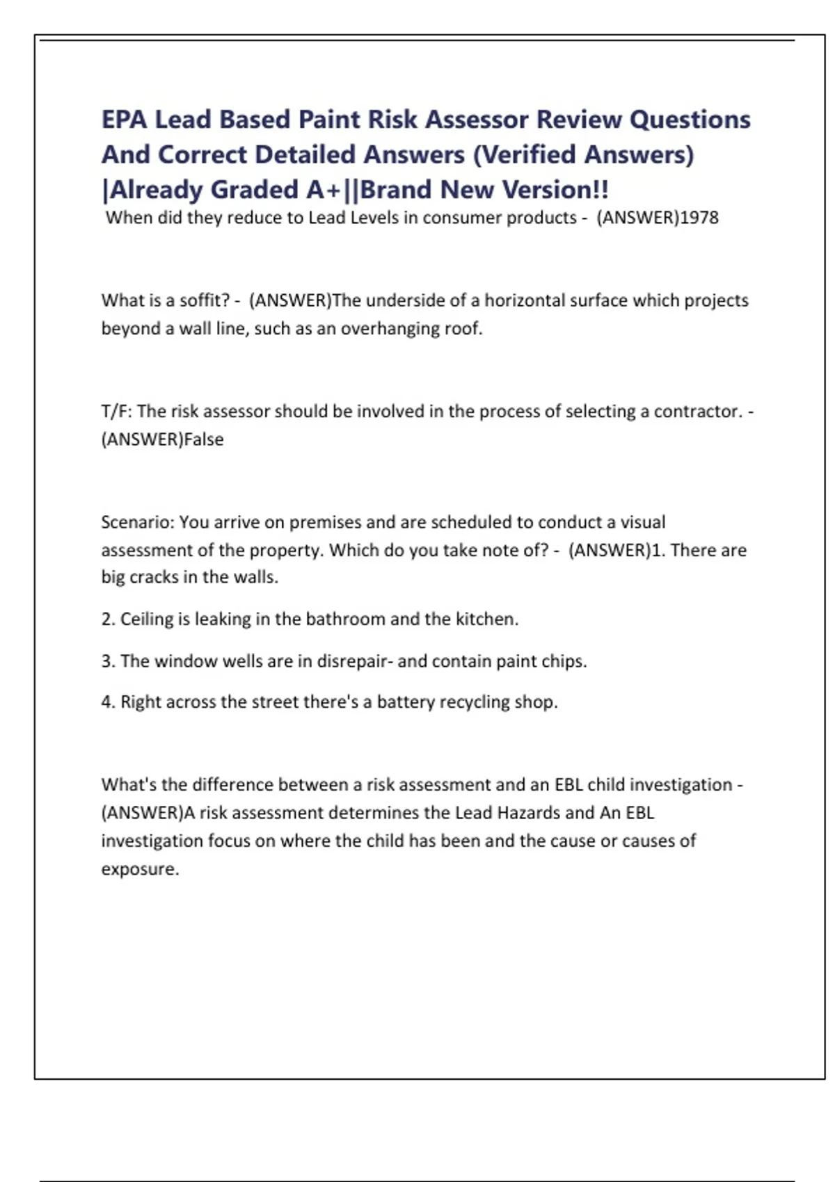 (ANSWER)A risk assessment determines the Lead Hazards and An EBL