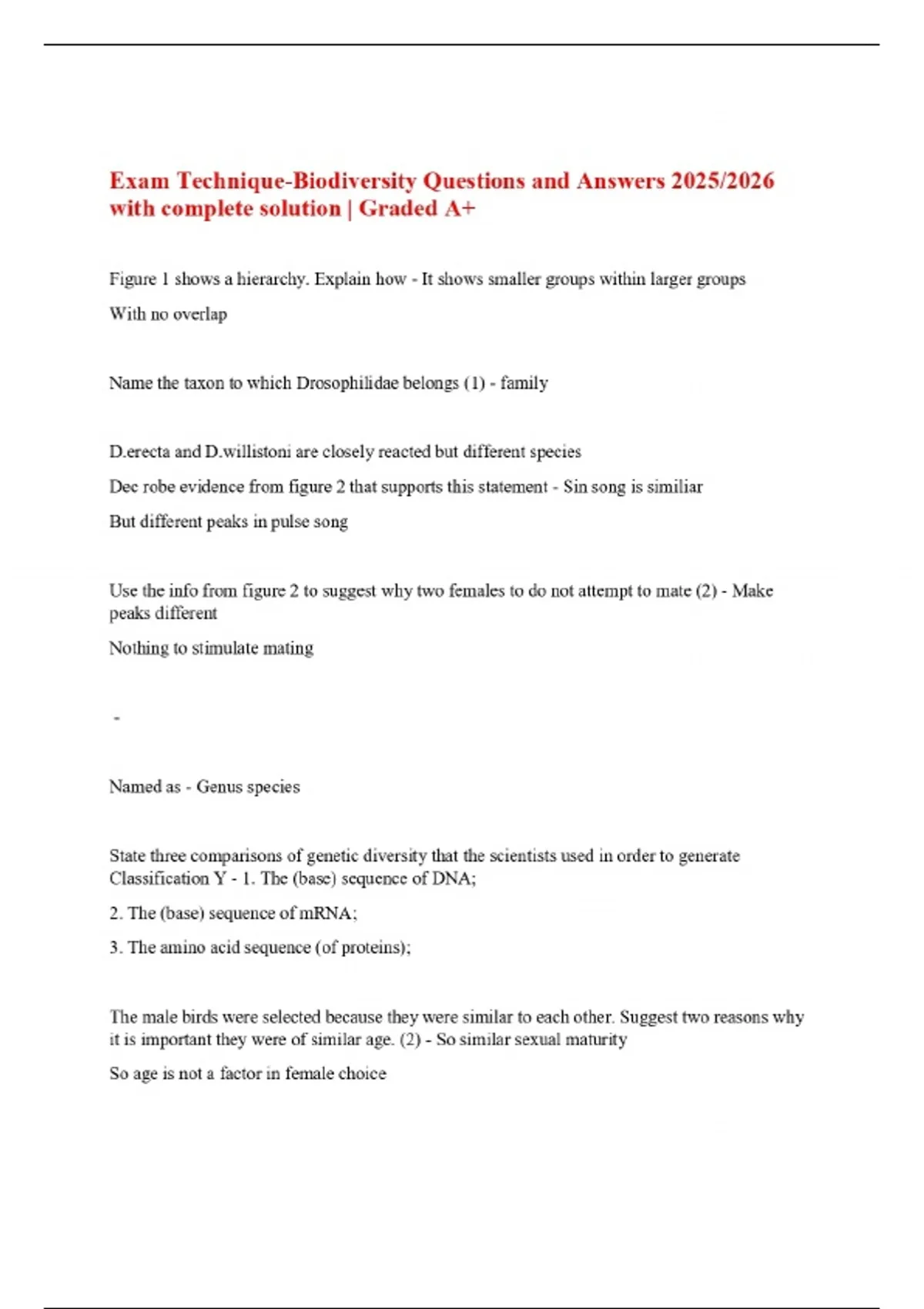 Exam Technique-Biodiversity Questions and Answers 2025/2026 with complete solution | Graded A+