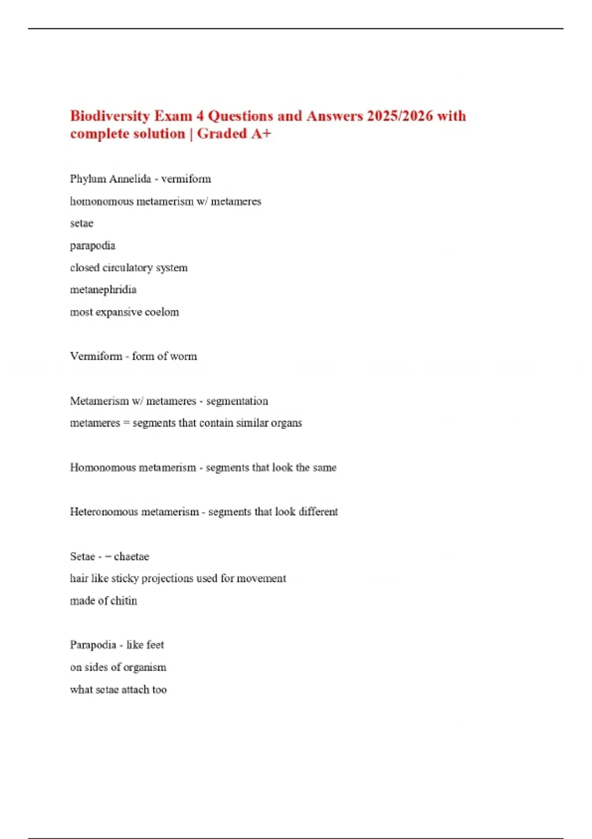 Biodiversity Exam 4 Questions and Answers 2025/2026 with complete solution | Graded A+