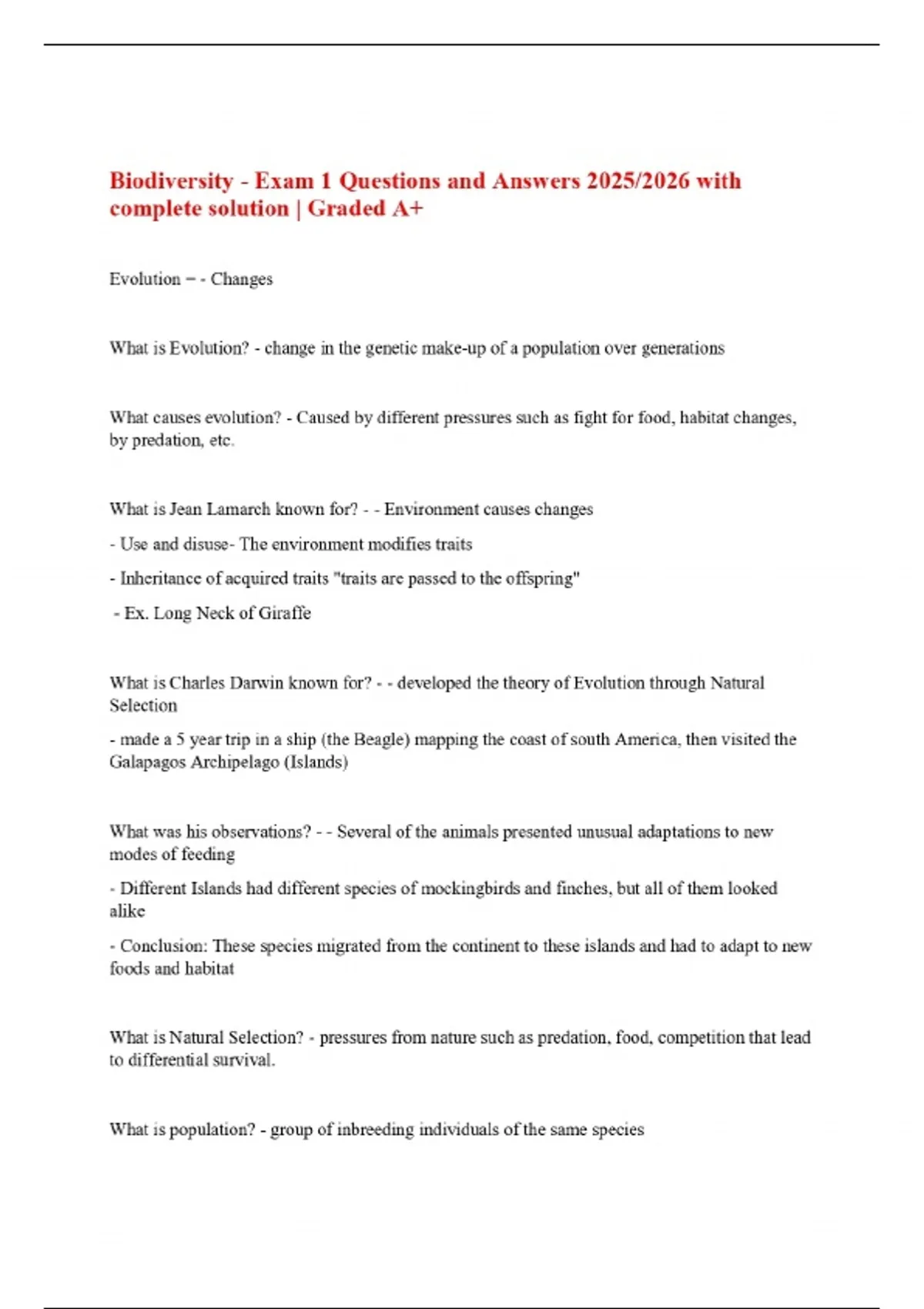 Biodiversity - Exam 1 Questions and Answers 2025/2026 with complete solution | Graded A+