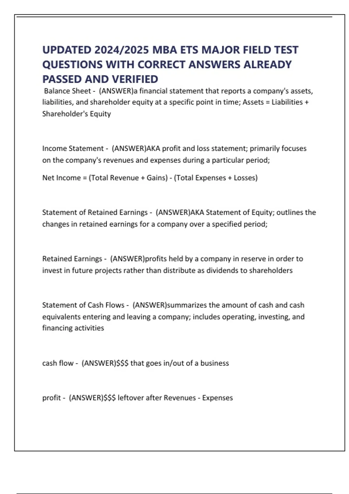 UPDATED 2024/2025 MBA ETS MAJOR FIELD TEST