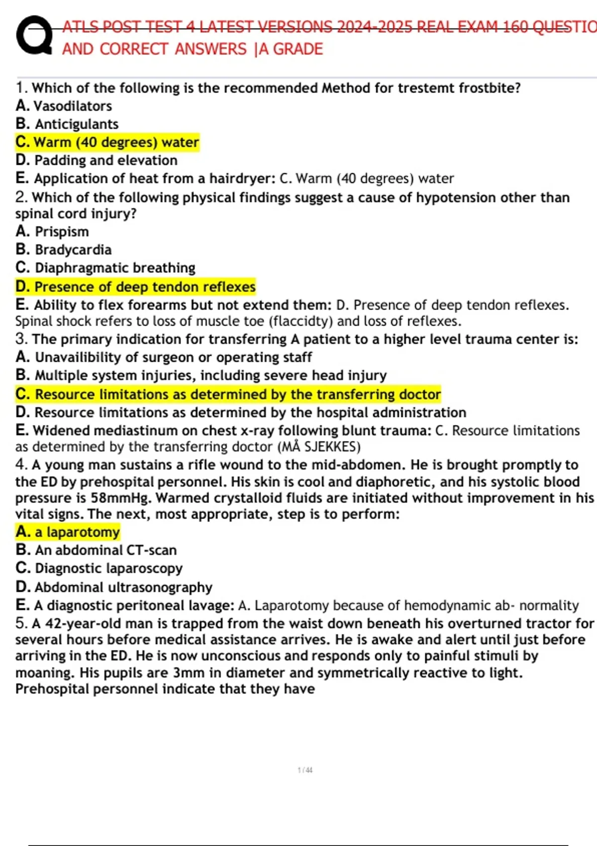 , ATLS POST TEST 4 LATEST VERSIONS 2024-2025 REAL EXAM 160 QUESTIO