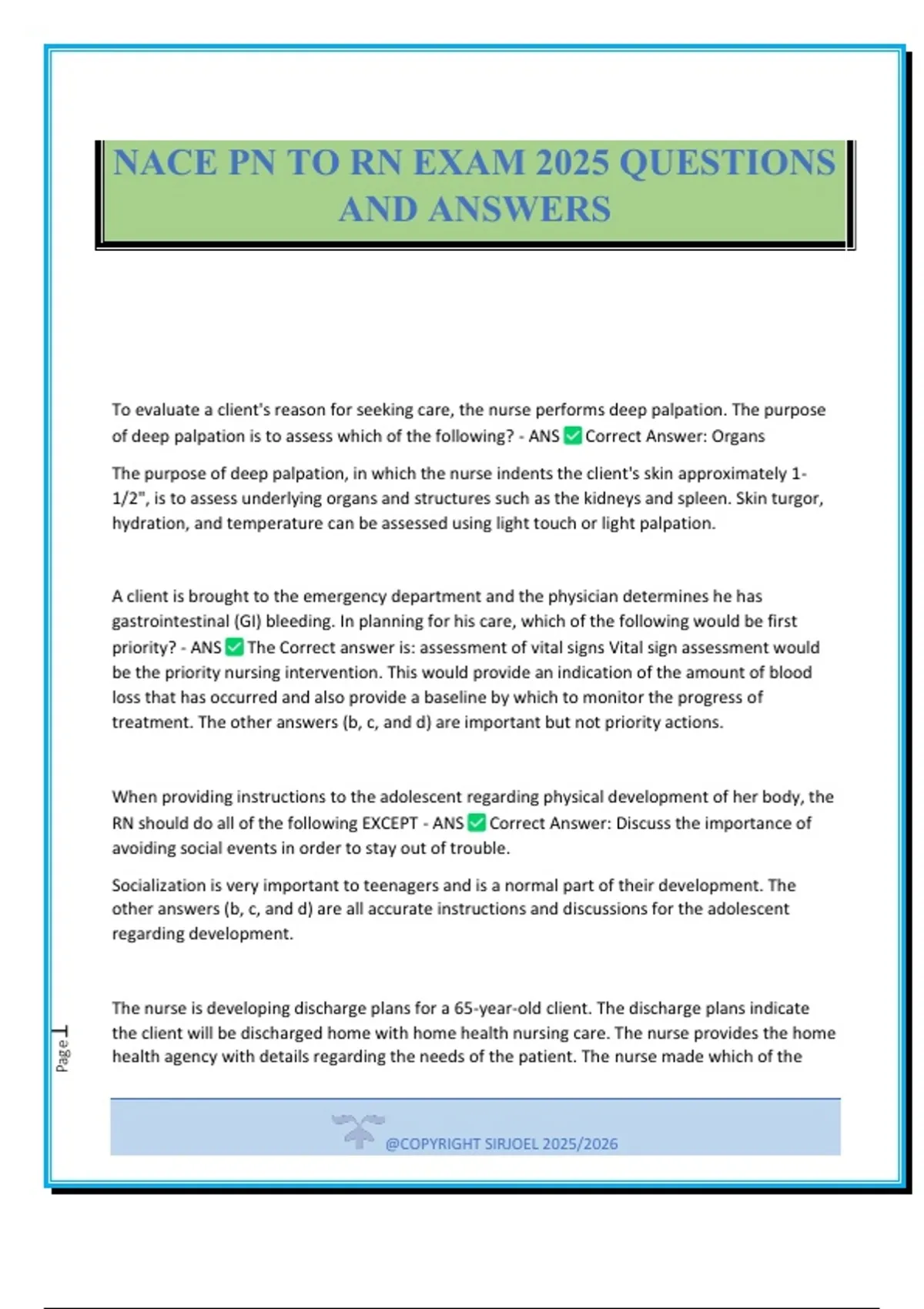 RN should do all of the following EXCEPT - ANS Correct Answer: Discuss the importance of