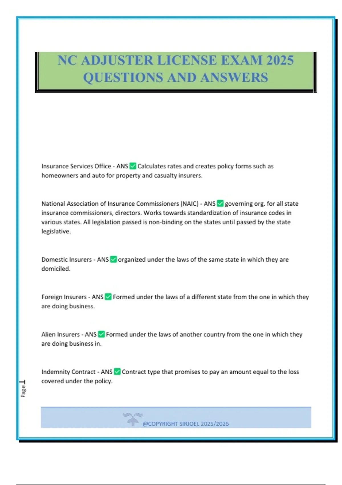 NC ADJUSTER LICENSE EXAM 2025 QUESTIONS AND ANSWERS