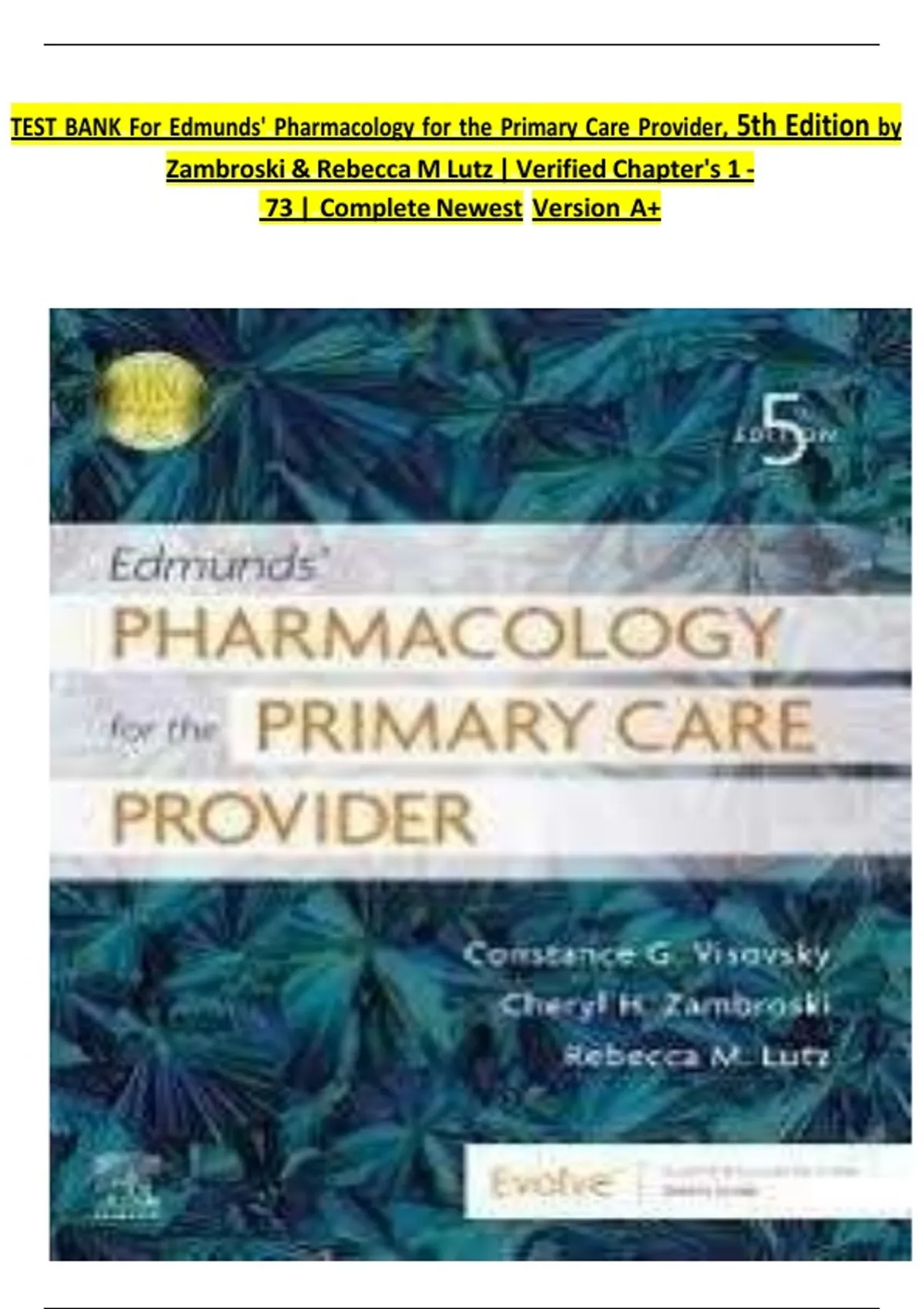 TEST BANK For Edmunds' Pharmacology for the Primary Care Provider, 5th Edition by
