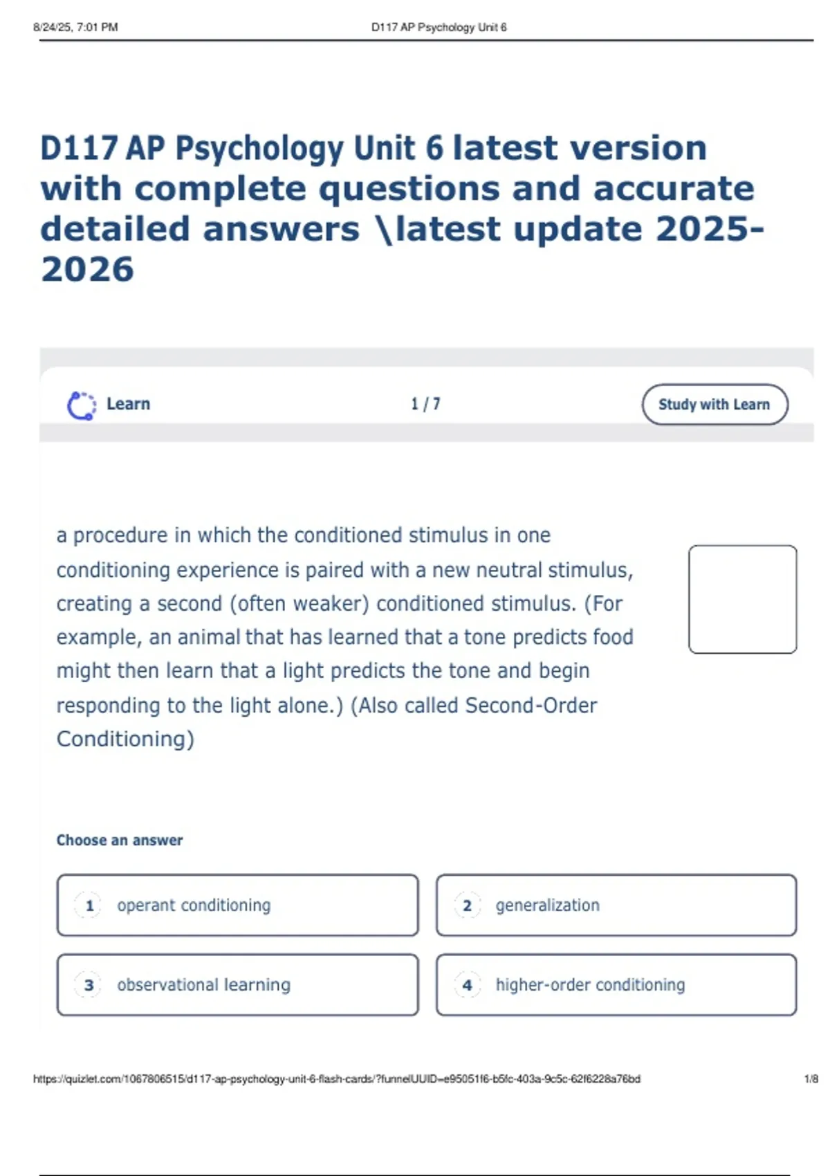 https://quizlet.com/1067806515/d117-ap-psychology-unit-6-flash-cards/?funnelUUID=e95051f6-b5fc-403a-9c5c-62f6228a76bd 1/8