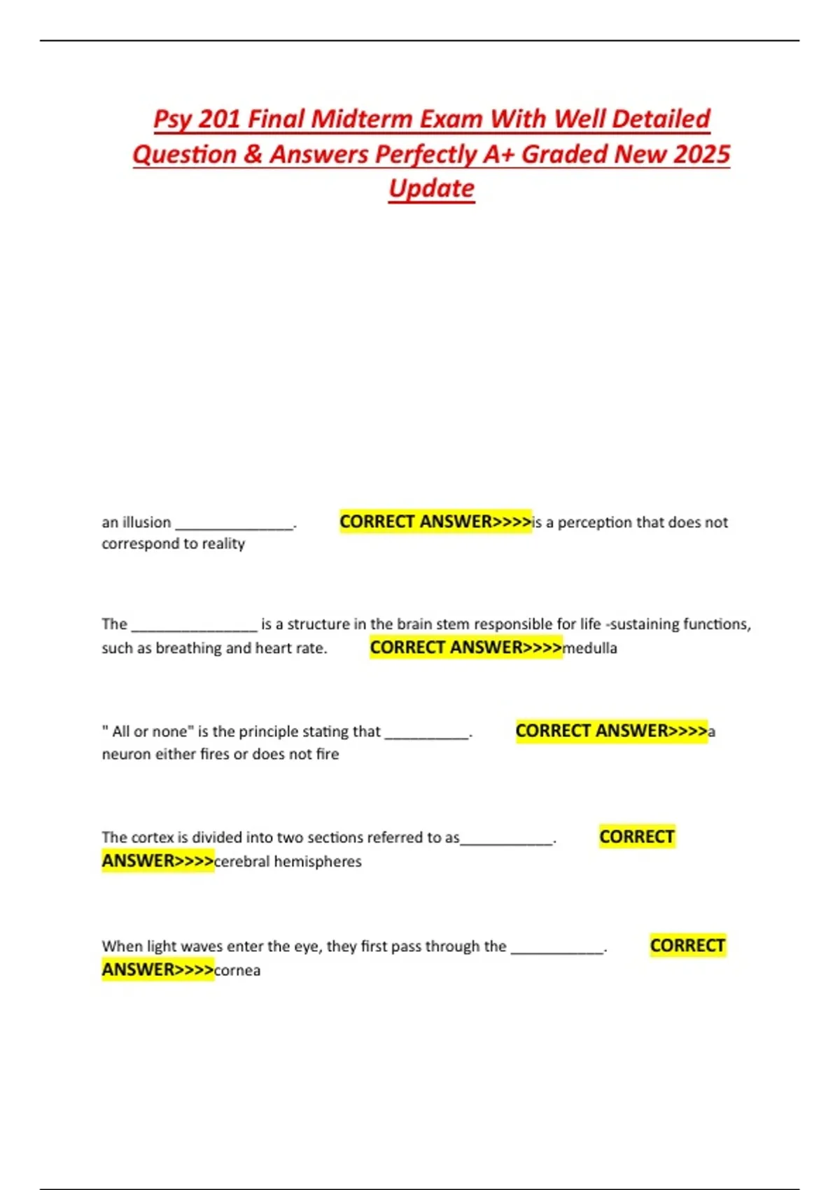 Psy 201 Final Midterm Exam With Well Detailed
