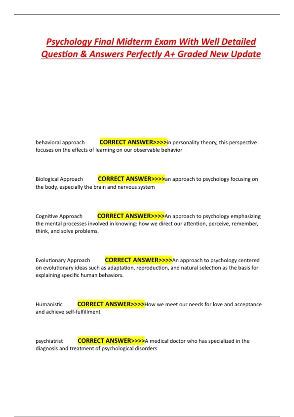 Psychology Final Midterm Exam With Well Detailed
