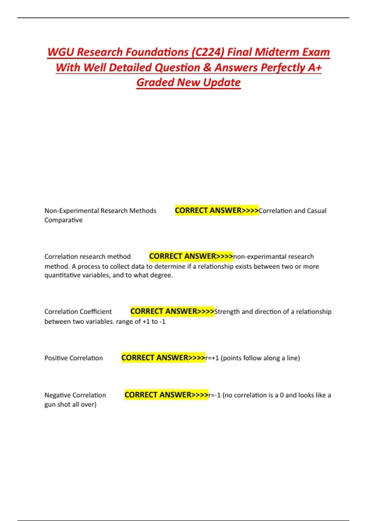Correlation research method CORRECT ANSWER>>>>non-experimantal research