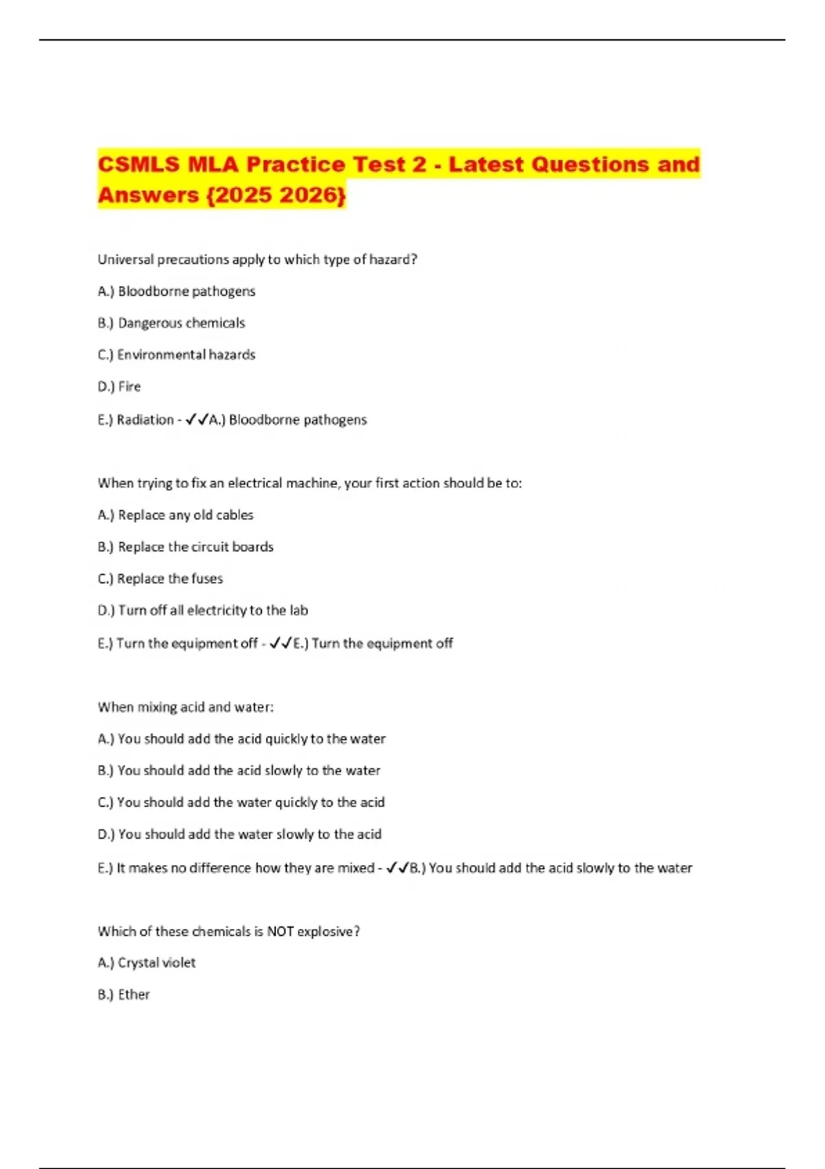 CSMLS MLA Practice Test 2 - Latest Questions and Answers {}