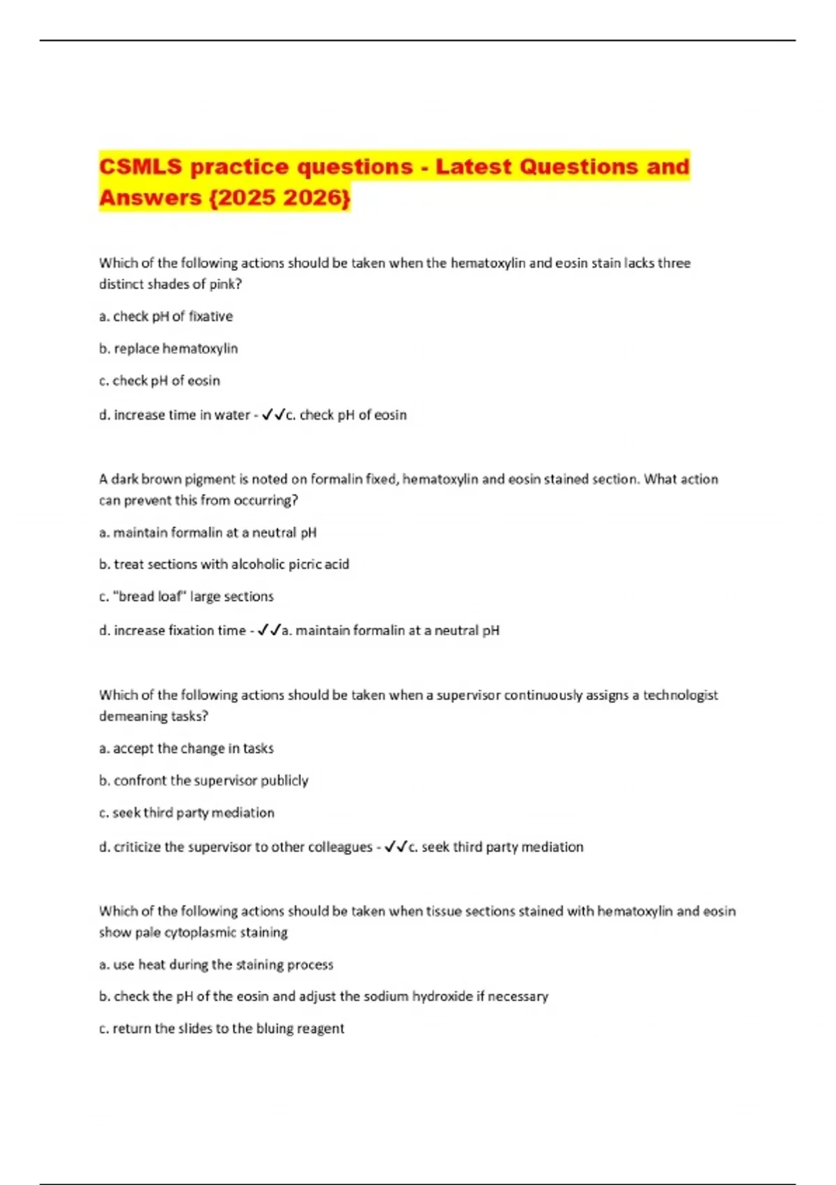 CSMLS practice questions - Latest Questions and Answers {}