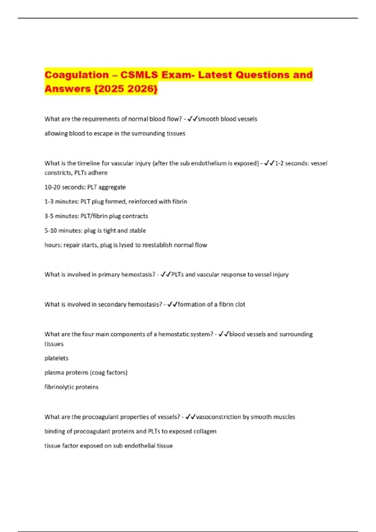 Coagulation – CSMLS Exam- Latest Questions and Answers {}