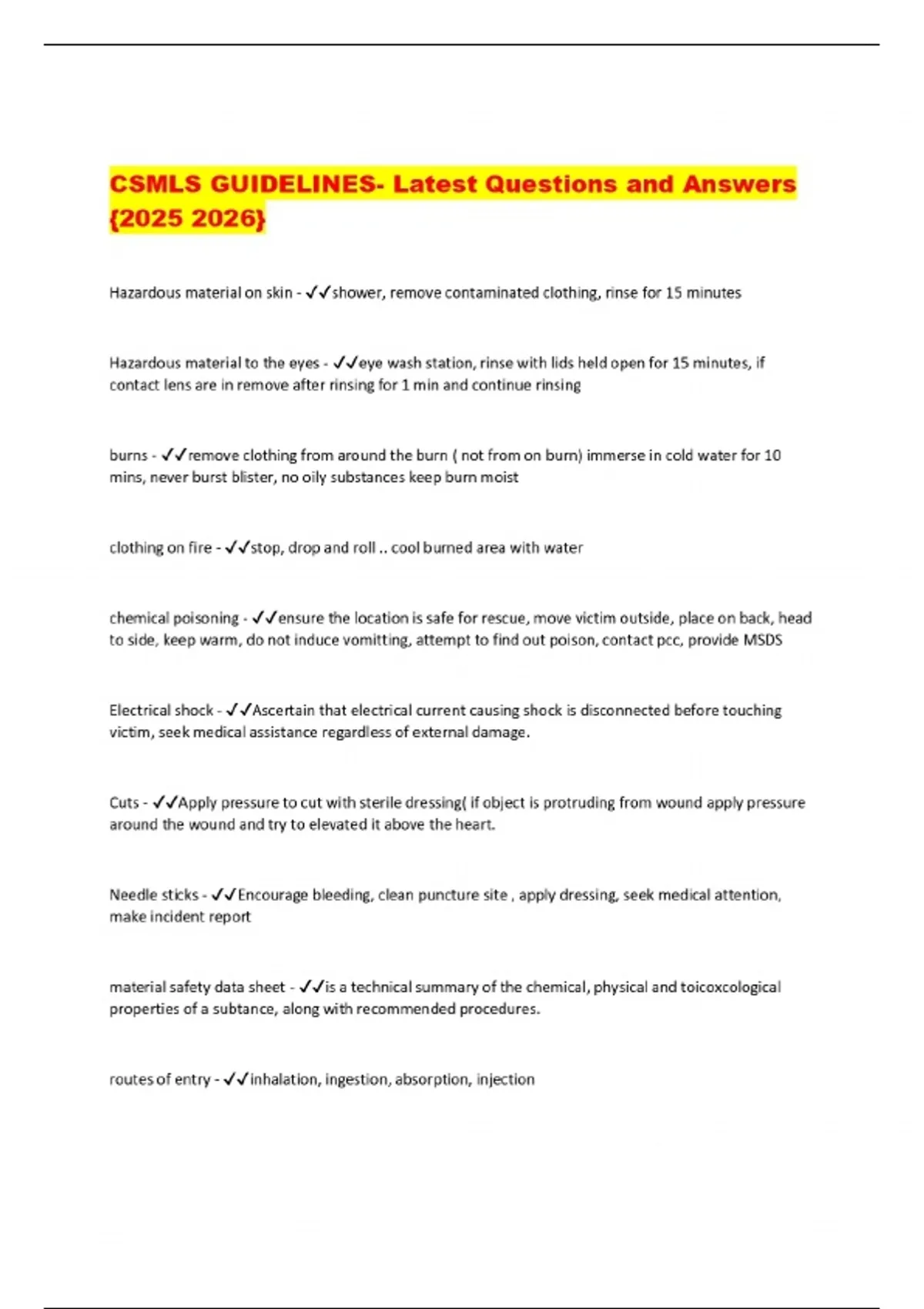 CSMLS GUIDELINES- Latest Questions and Answers {}