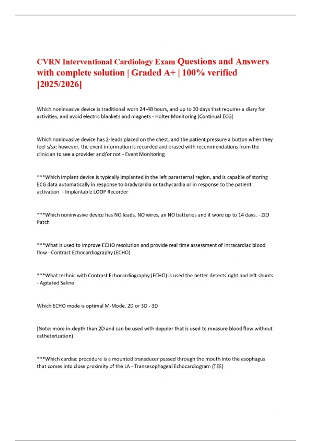 CVRN Interventional Cardiology Exam Questions and Answers with complete solution | Graded A+ | 100% verified [2025/2026]