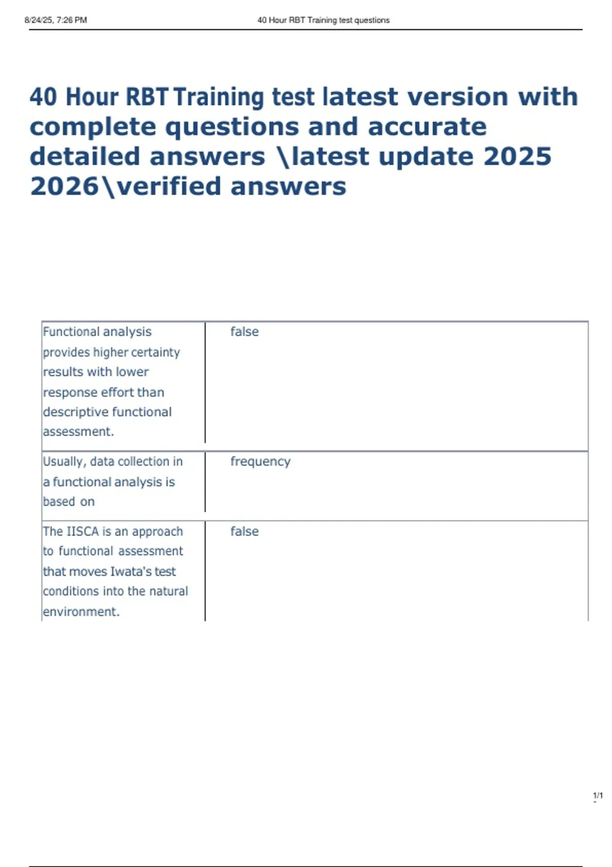 40 Hour RBT Training test latest version with complete questions and accurate detailed answers latest update verified answers