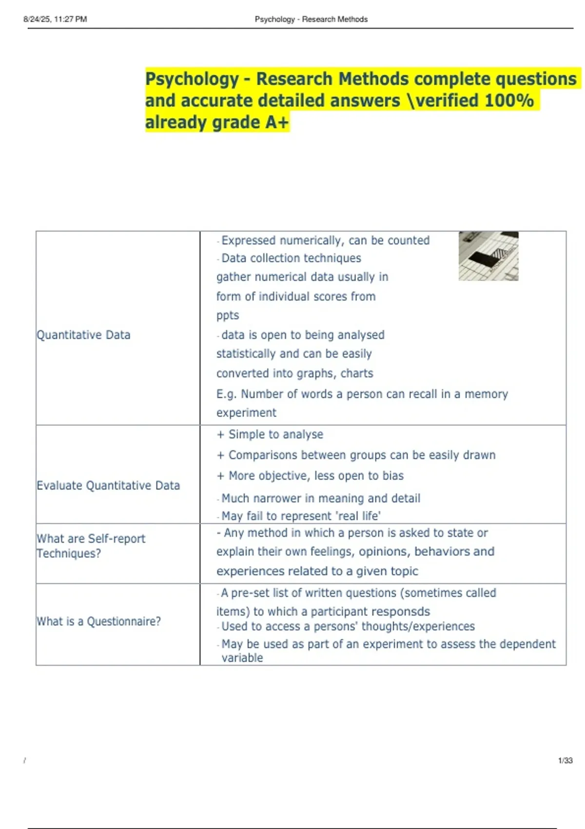 Psychology - Research Methods complete questions