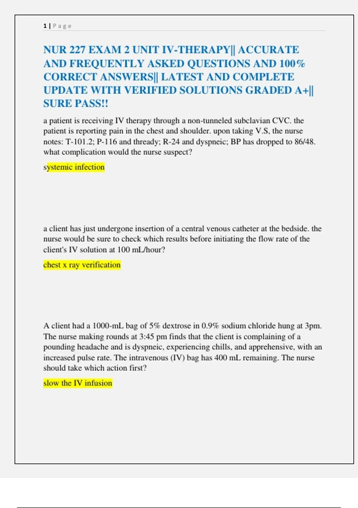 NUR 227 EXAM 2 UNIT IV-THERAPY|| ACCURATE