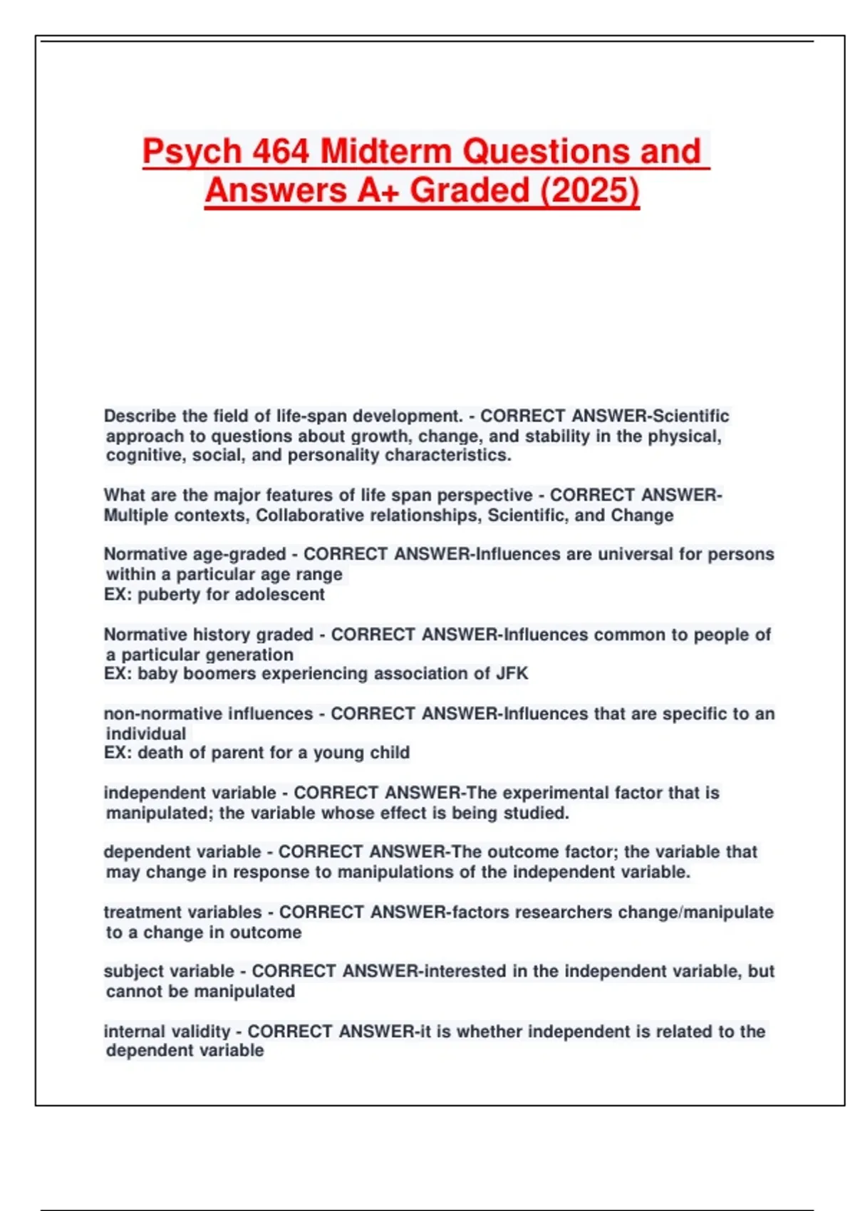 Psych 464 Midterm Questions and Answers A+ Graded (2025).