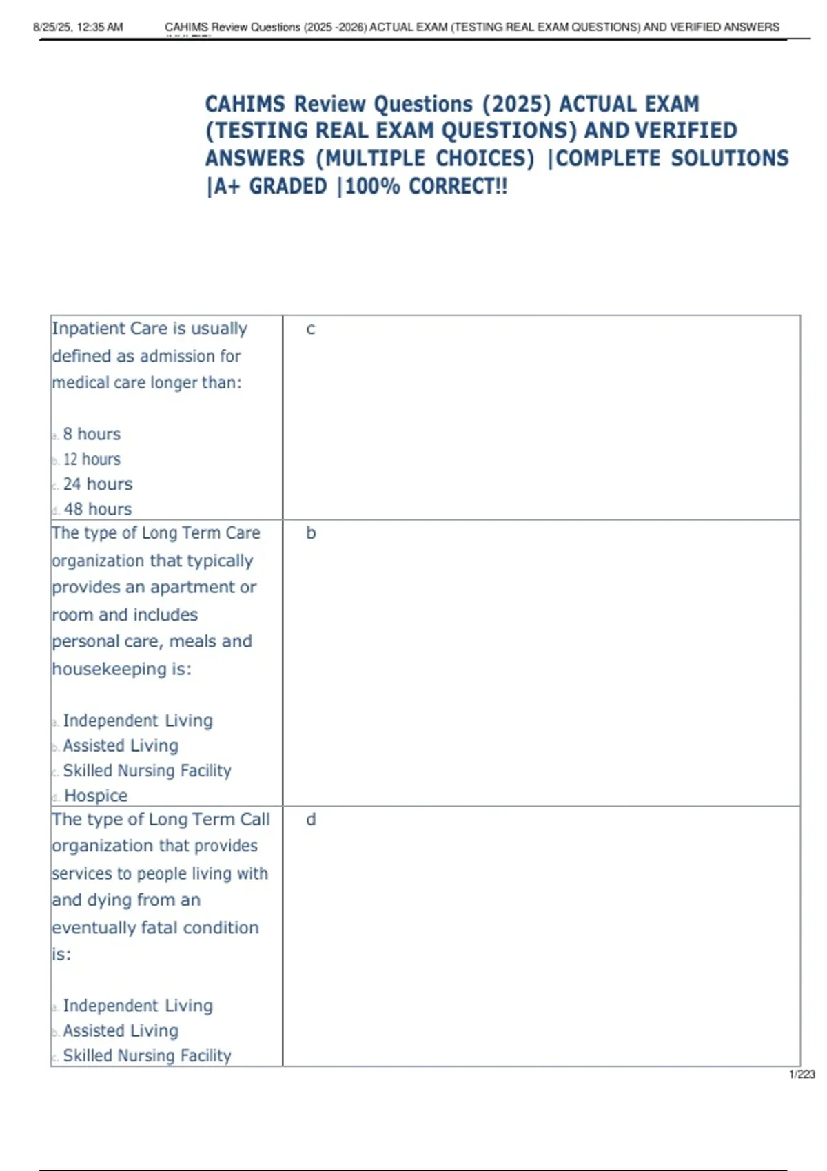 ,8/25/25, 12:35 AM CAHIMS Review Questions (2025 -2026) ACTUAL EXAM (TESTING REAL EXAM QUESTIONS) AND VERIFIED ANSWERS