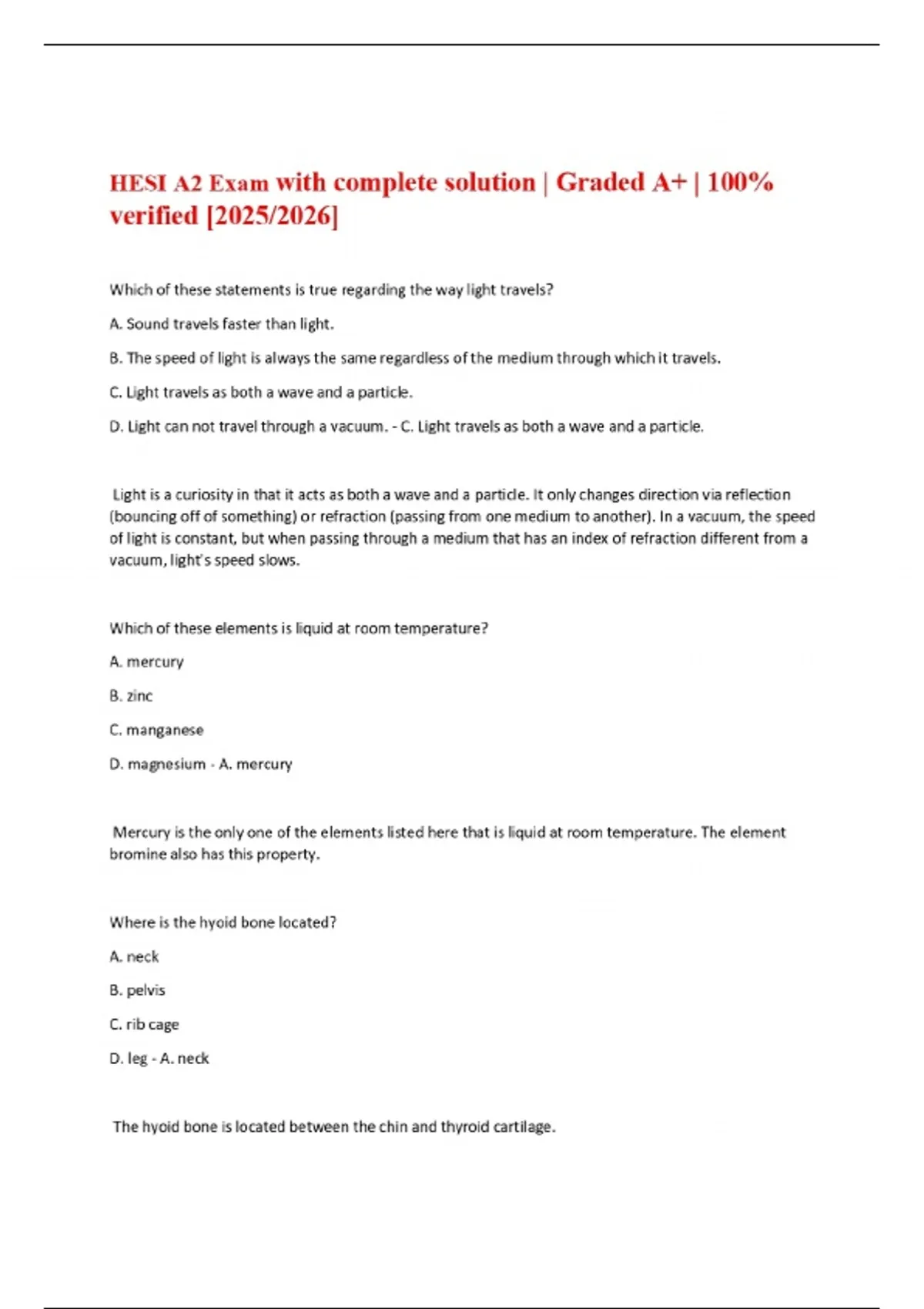 HESI A2 Exam with complete solution | Graded A+ | 100% verified [2025/2026]