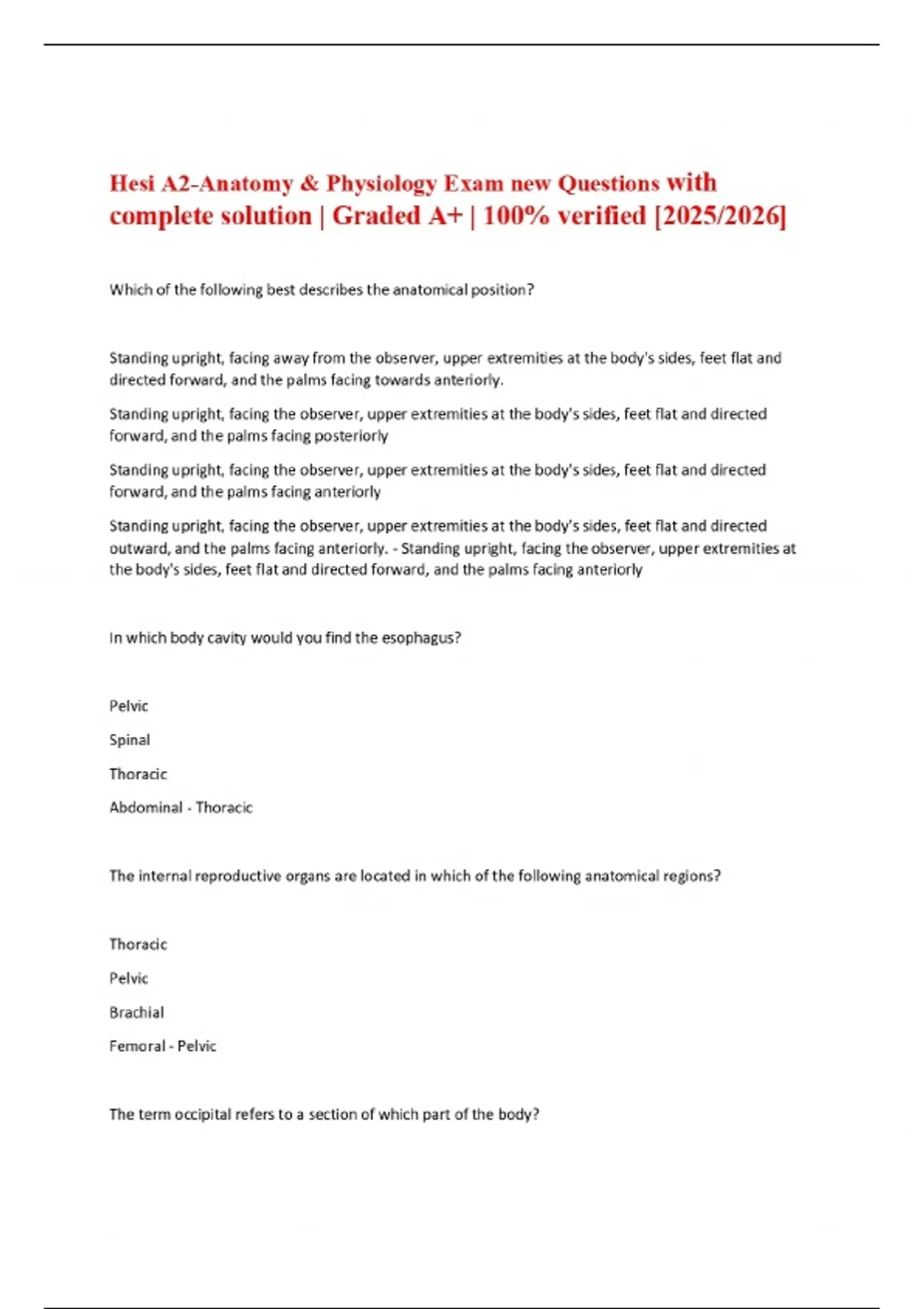 Hesi A2-Anatomy & Physiology Exam new Questions with complete solution | Graded A+ | 100% verified [2025/2026]