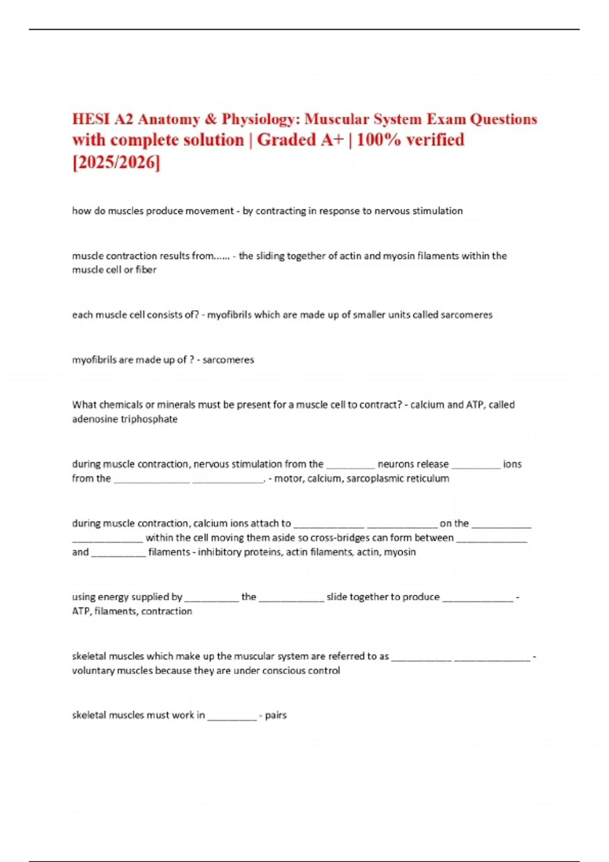 HESI A2 Anatomy & Physiology: Muscular System Exam Questions with complete solution | Graded A+ | 100% verified [2025/2026]