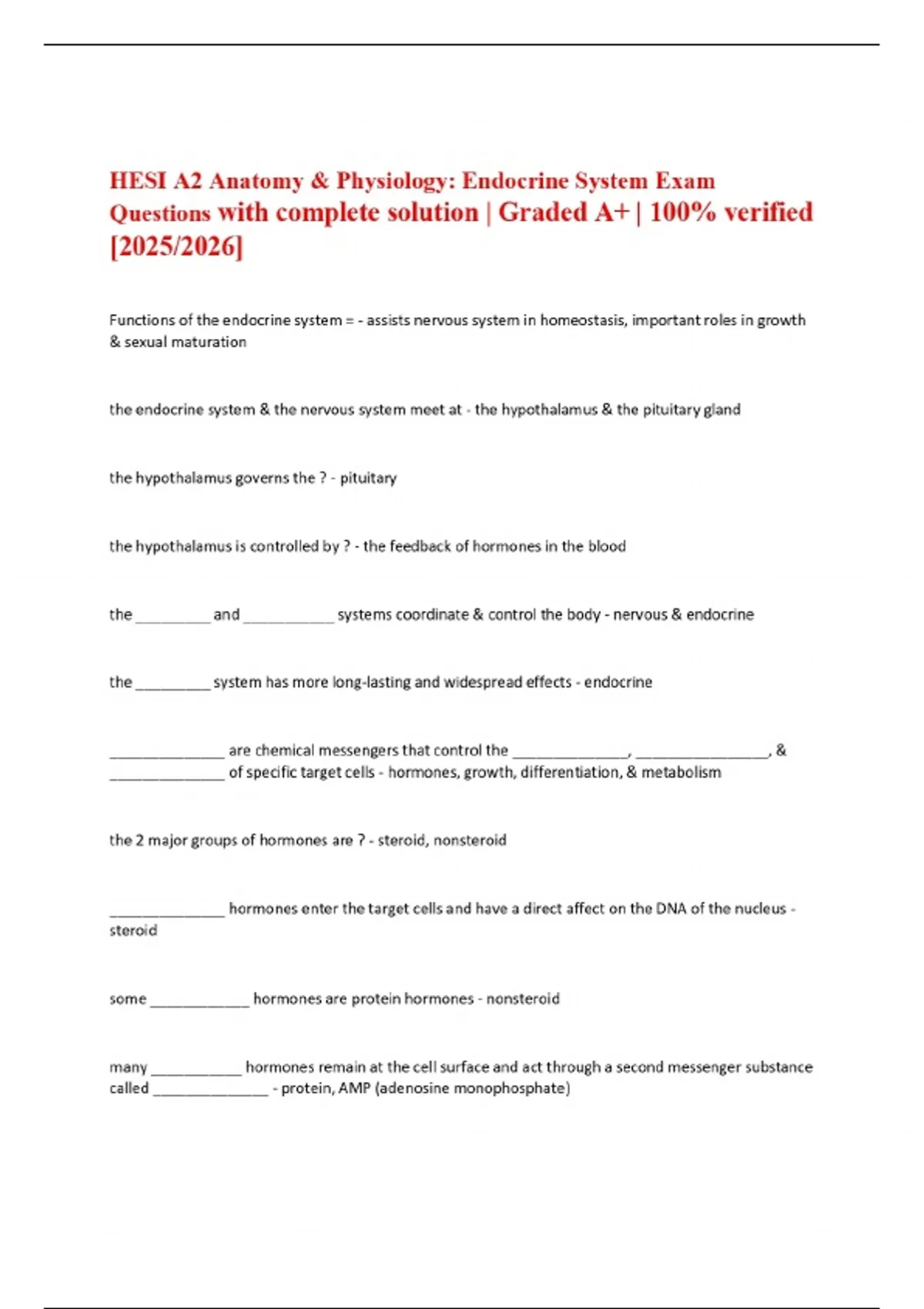 HESI A2 Anatomy & Physiology: Endocrine System Exam Questions with complete solution | Graded A+ | 100% verified [2025/2026]