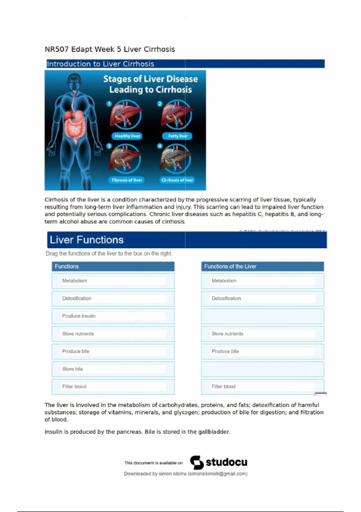 Ace your NR507 Edapt Week 5 assignment with this 2025 updated study guide on liver cirrhosis. Covers causes, pathophysiology, complications, and clinical features, with exam-focused notes and practice Q&A. Perfect for nursing students preparing for NR507 exams and Edapt quizzes.