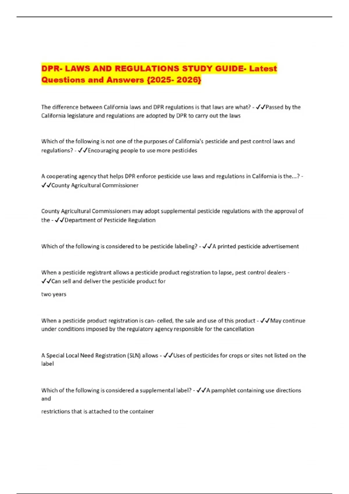 DPR- LAWS AND REGULATIONS STUDY GUIDE- Latest Questions and Answers {}