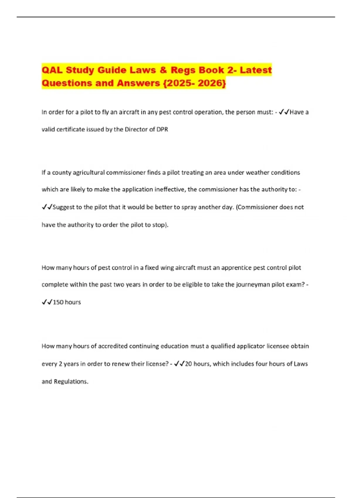 QAL Study Guide Laws & Regs Book 2- Latest Questions and Answers {}