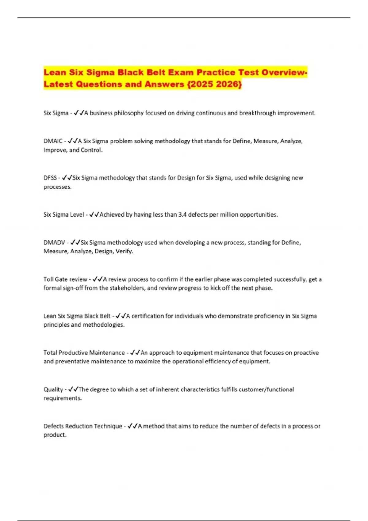 Lean Six Sigma Black Belt Exam Practice Test Overview- Latest Questions and Answers {}