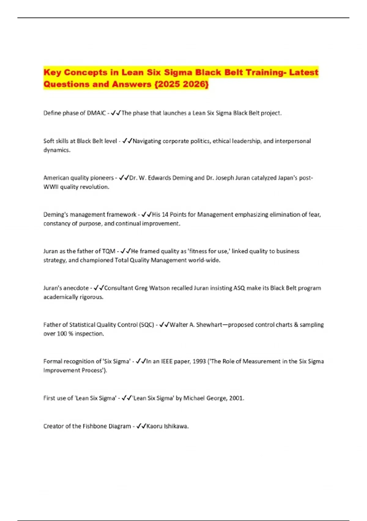 Key Concepts in Lean Six Sigma Black Belt Training- Latest Questions and Answers {}