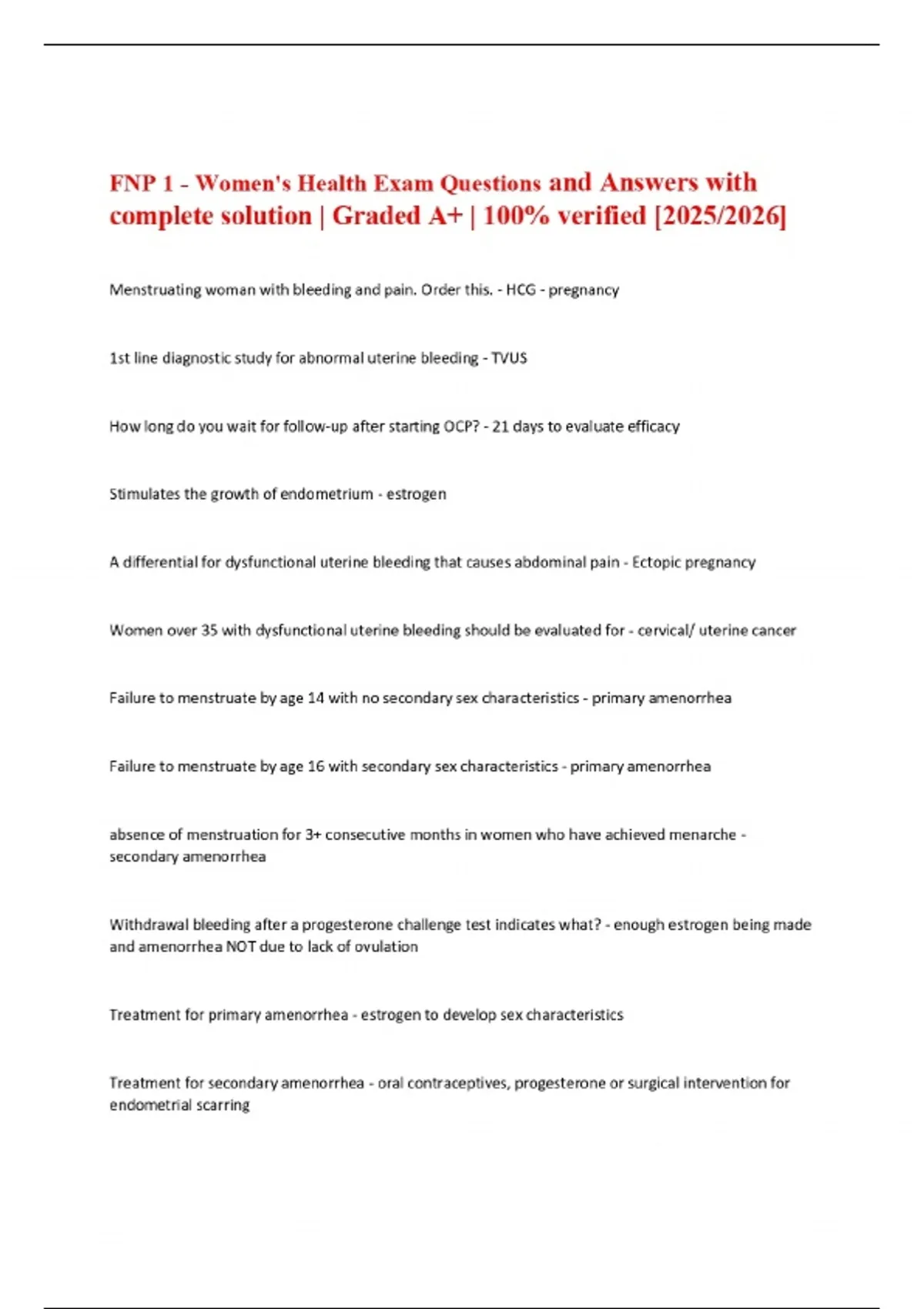 FNP 1 - Women's Health Exam Questions and Answers with complete solution | Graded A+ | 100% verified [2025/2026]
