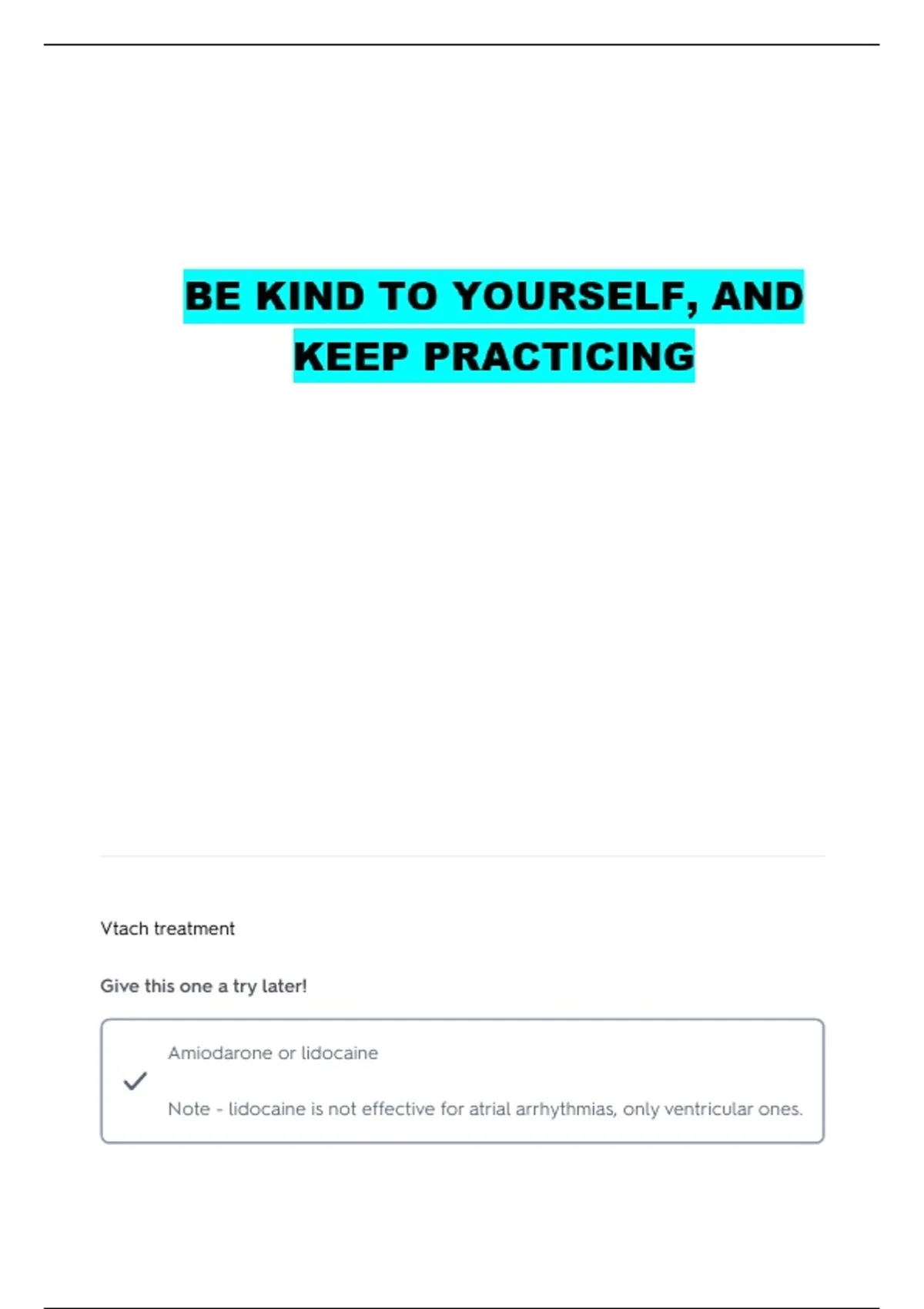 Note - lidocaine is not effective for atrial arrhythmias, only ventricular ones.